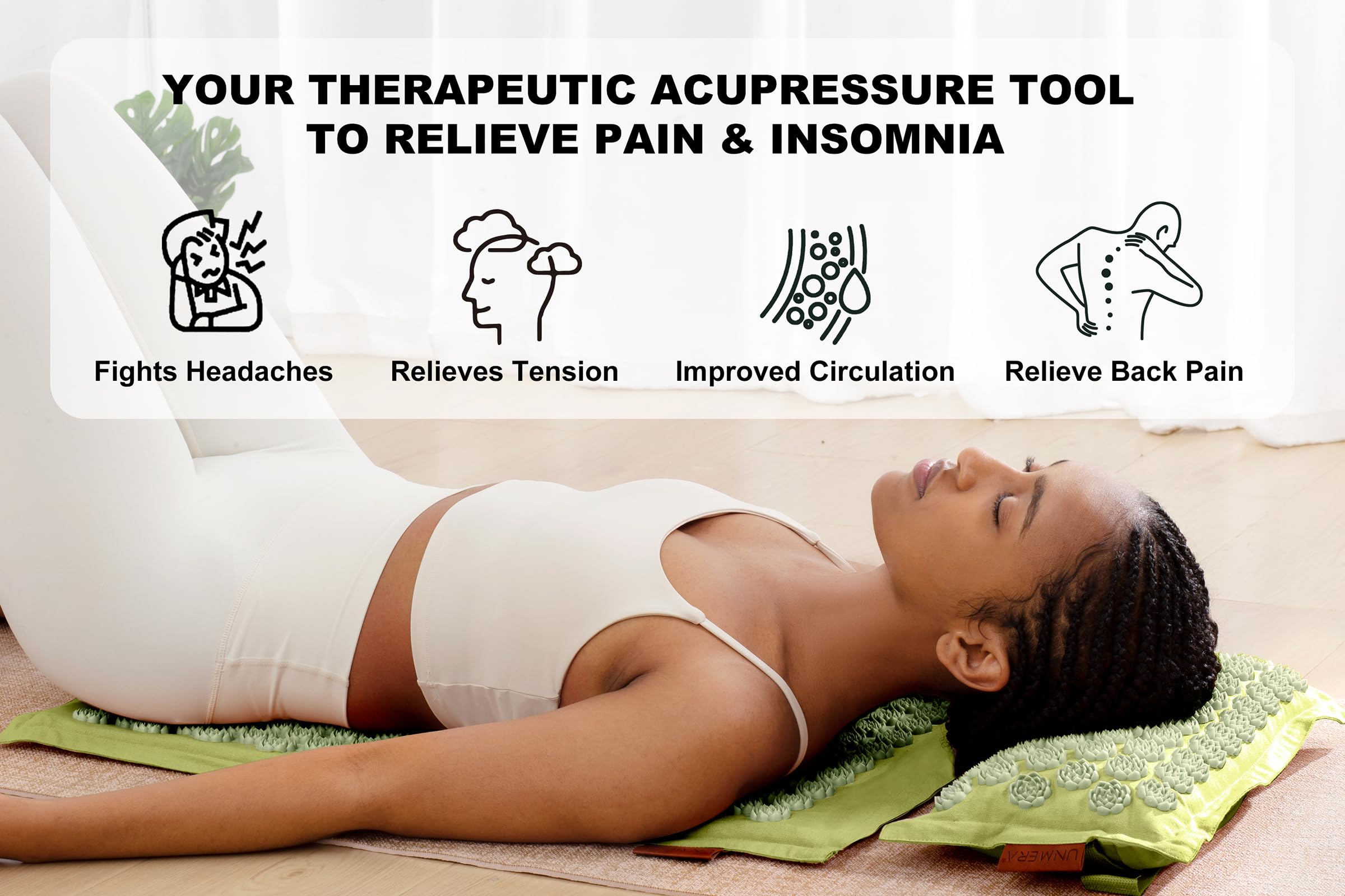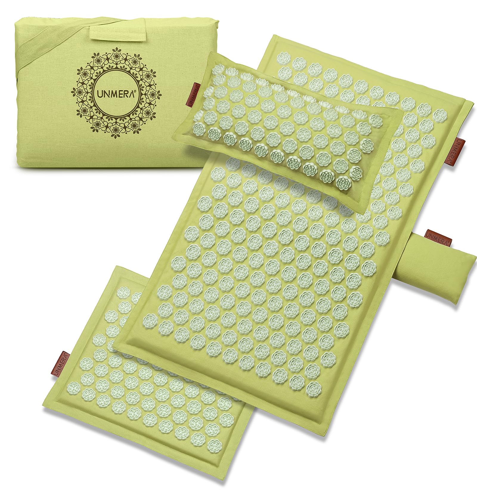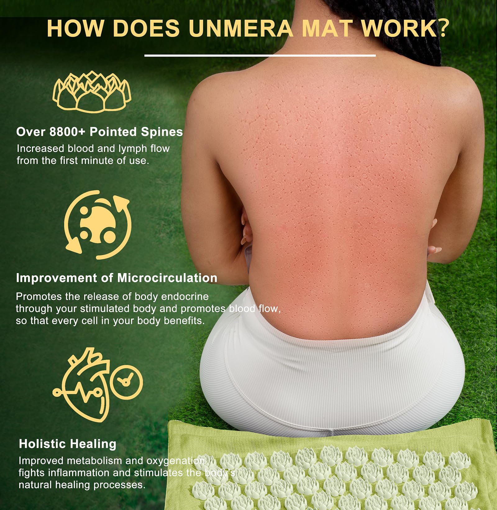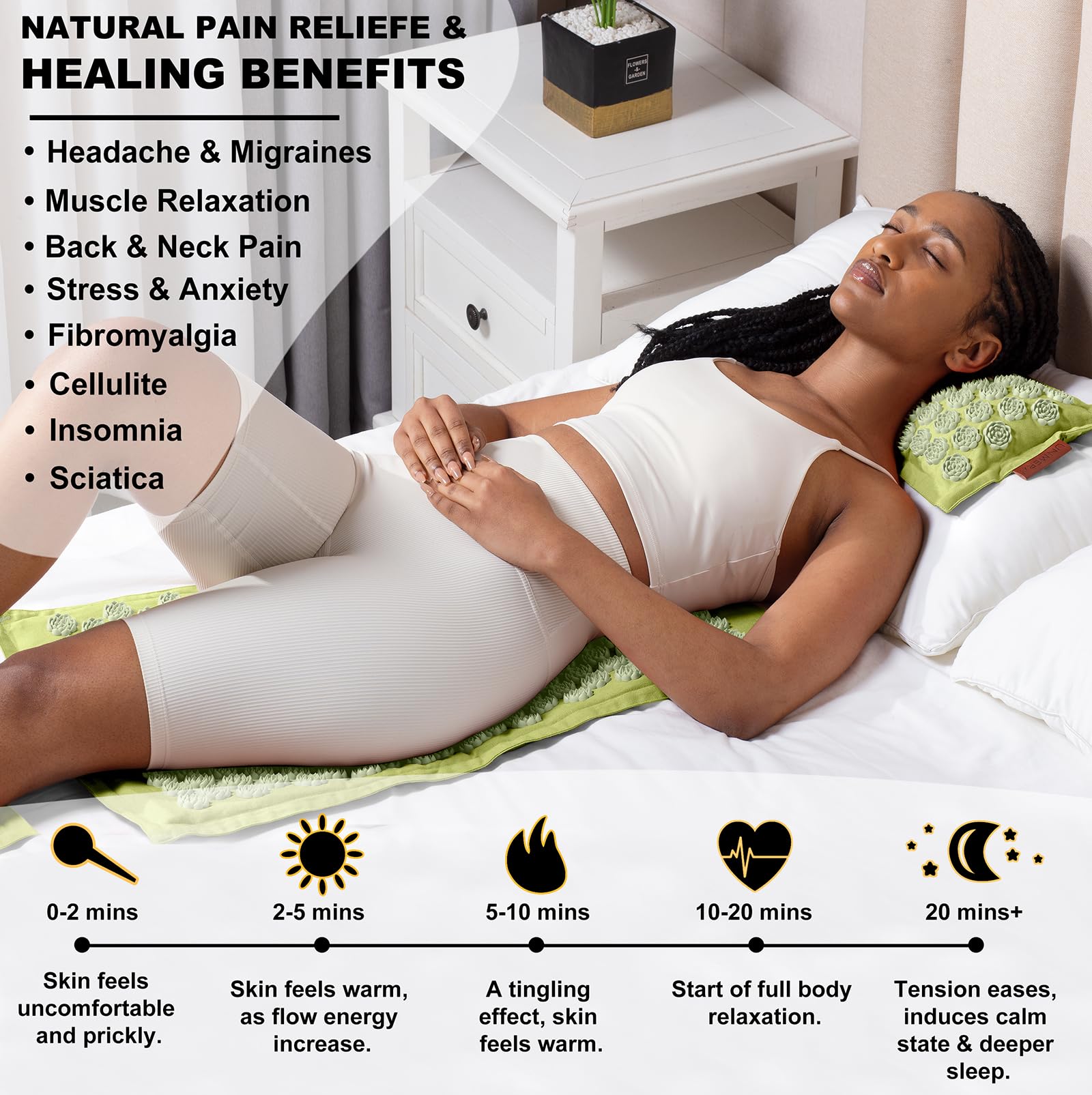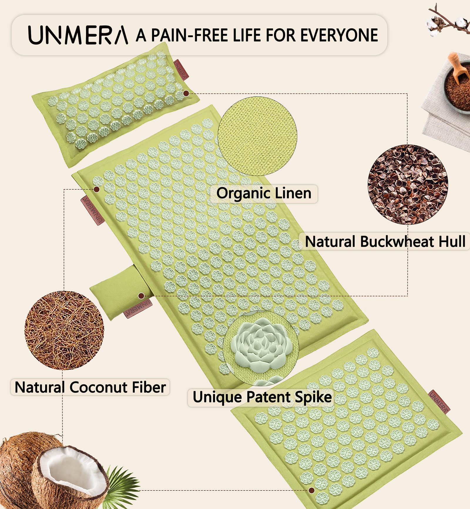 HANDMADE HIGH-QUALITY PRODUCTION:Acupressure mat is filled with natural linen and coconut fiber. there are 307 camellia spikes on the surface of Acupressure mat with 7368 Acupressure points; the Acupressure pillow is made of natural linen and buckwheat husk filling, with 63 camellia spikes and 1368 Acupressure points help us on the surface. Acupressure mat and pillow realize a real healthy life.