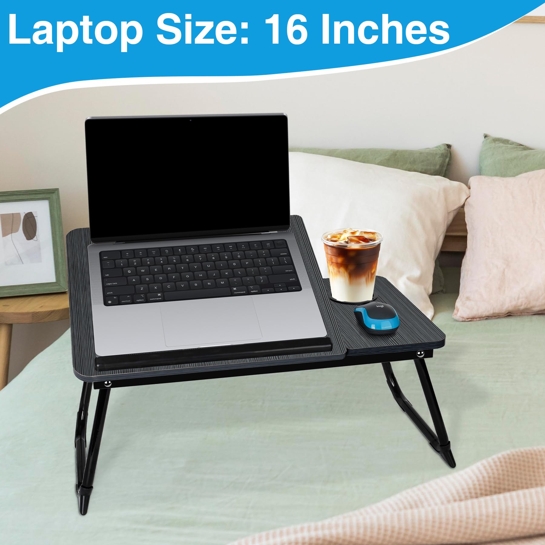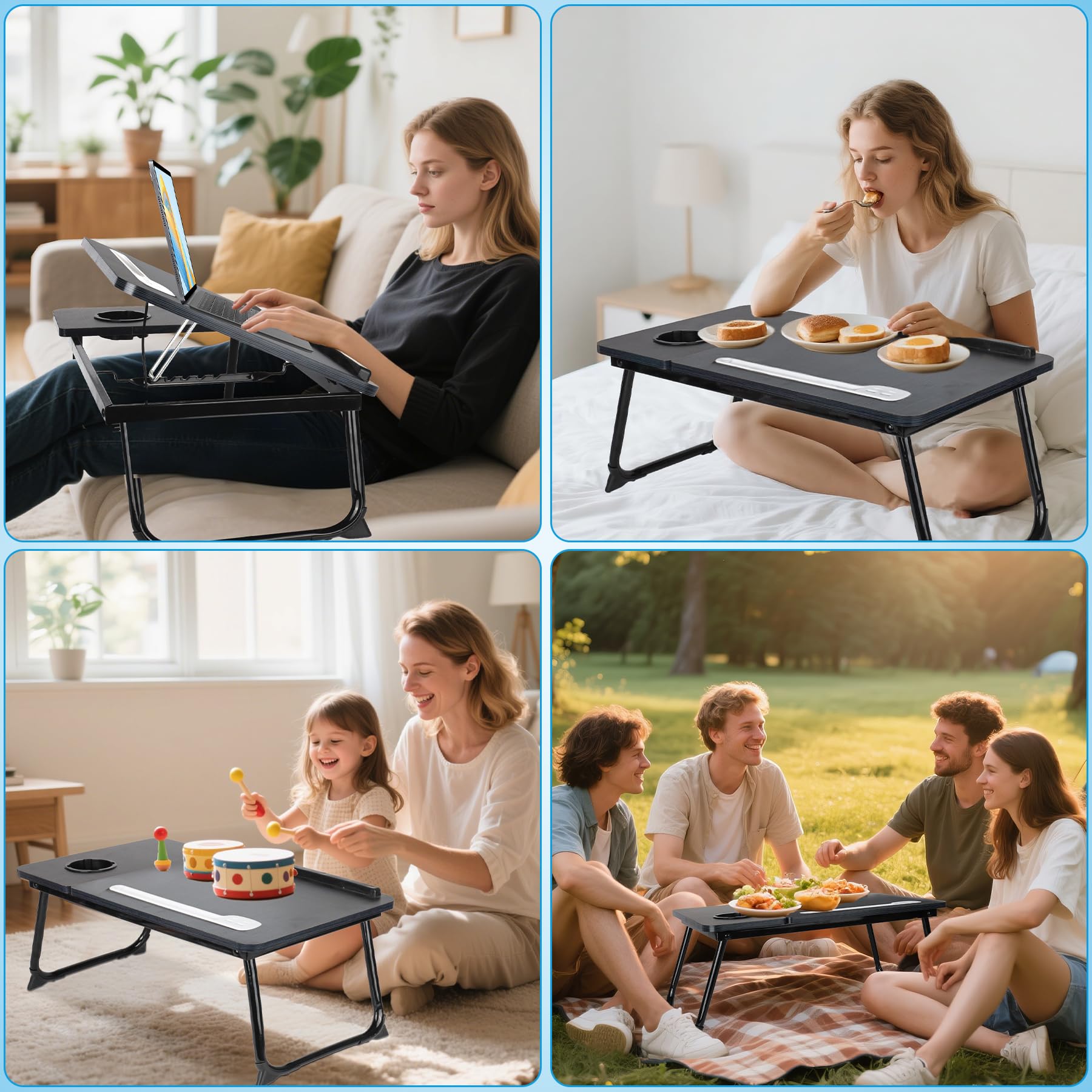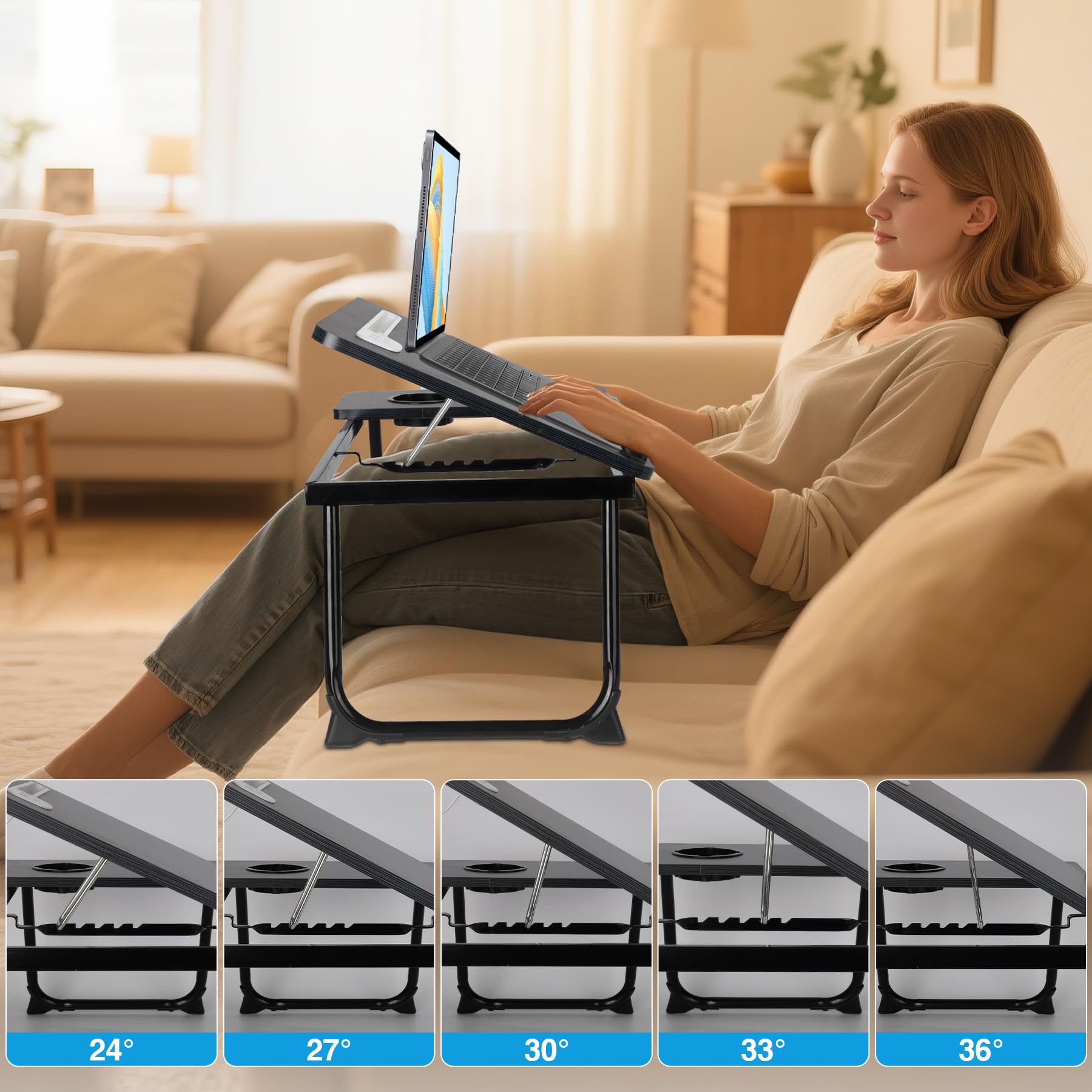 【Multifuntional Laptop Stand for Bed】-Portable laptop bed tray is equipped with desktop card slot and cup holder, pen slot. Suitable for relaxing in bed, or a book / tablet stand, eating breakfast, reading, watching movie on bed or sofa.
