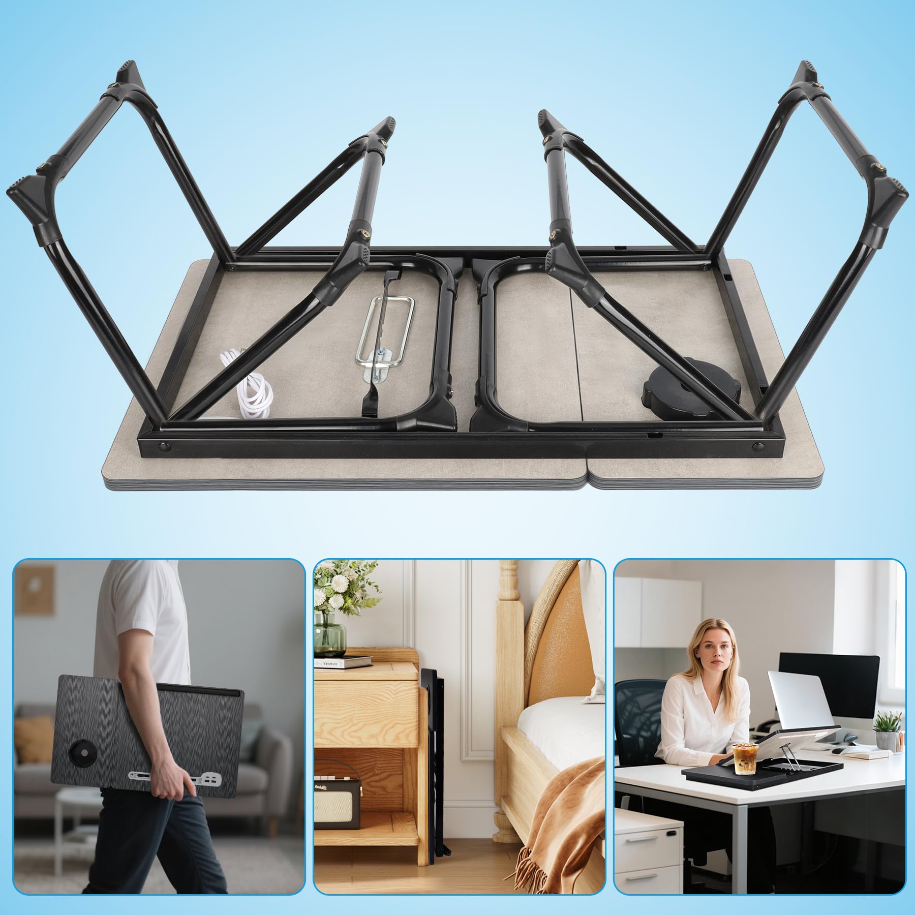 【Foldable Lap Desk】- 2 thicker aluminum alloy table legs are sturdy and can be folded easily. When folded the bed table can be placed under the sofa, bed, in the closet or other places to save space. The portable laptop desk can be moved for daily use.