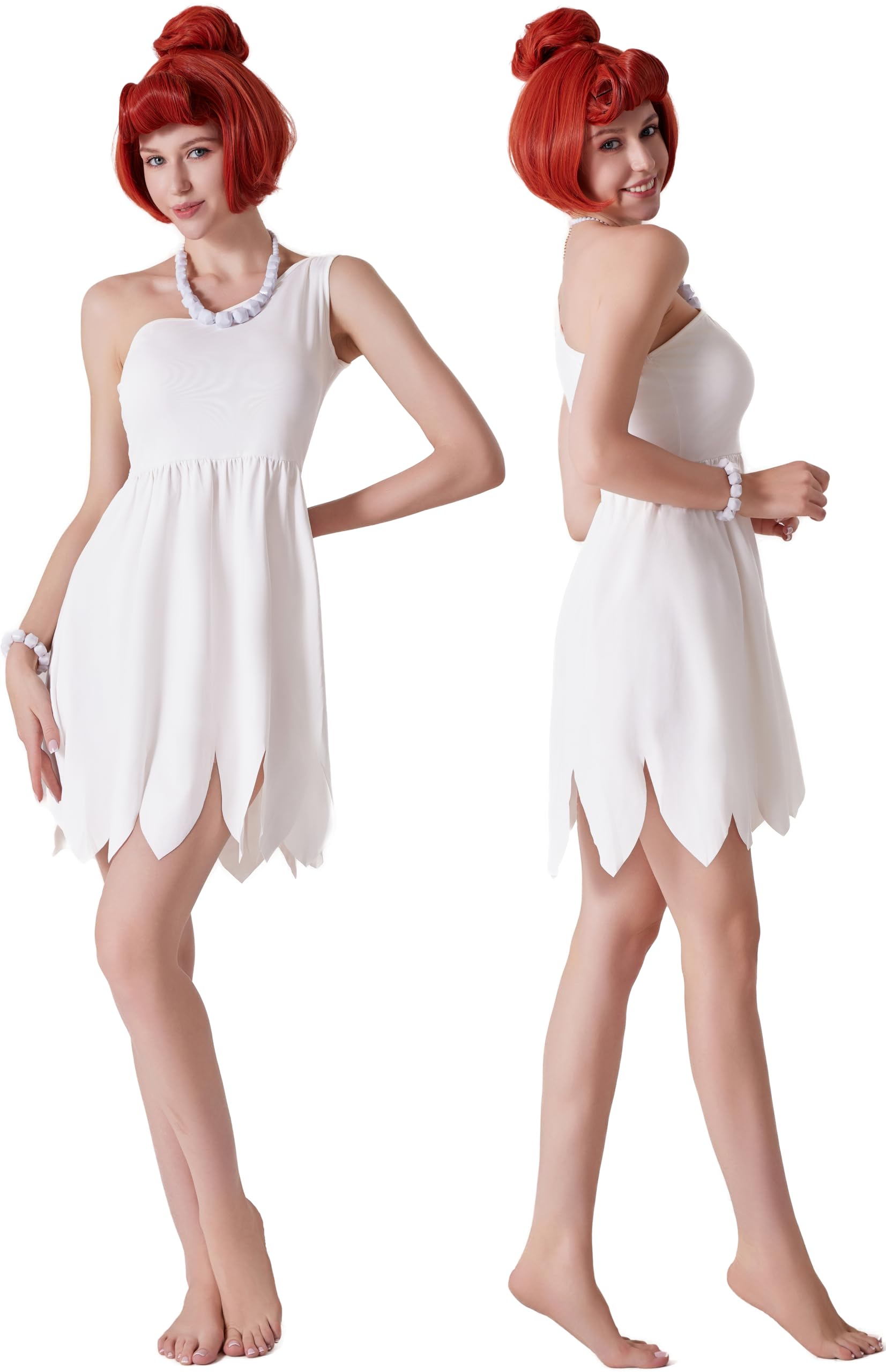 Step Back in Time: Channel your inner cave-dweller with this women's dress inspired by prehistory. The iconic white dress design is so chic, ideal for making a statement at your next costume event.
