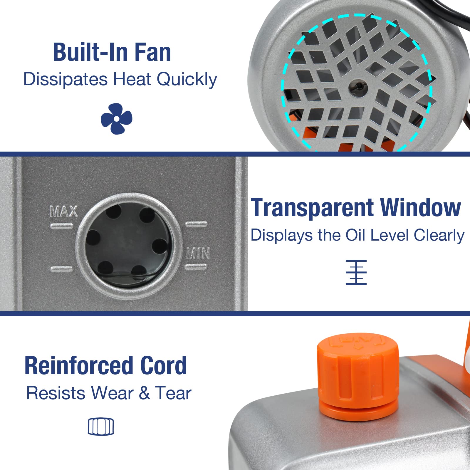 ใ๐๐ฅ๐ฅ๐จ๐ฒ ๐๐ฅ๐ฎ๐ฆ๐ข๐ง๐ฎ๐ฆ ๐๐๐ฌ๐ข๐ง๐ ใAlloy aluminum casing makes the single-stage rotary vane vacuum pump durable and long time use. High volume cooling fan keep the pump running efficiently and for a longer life.