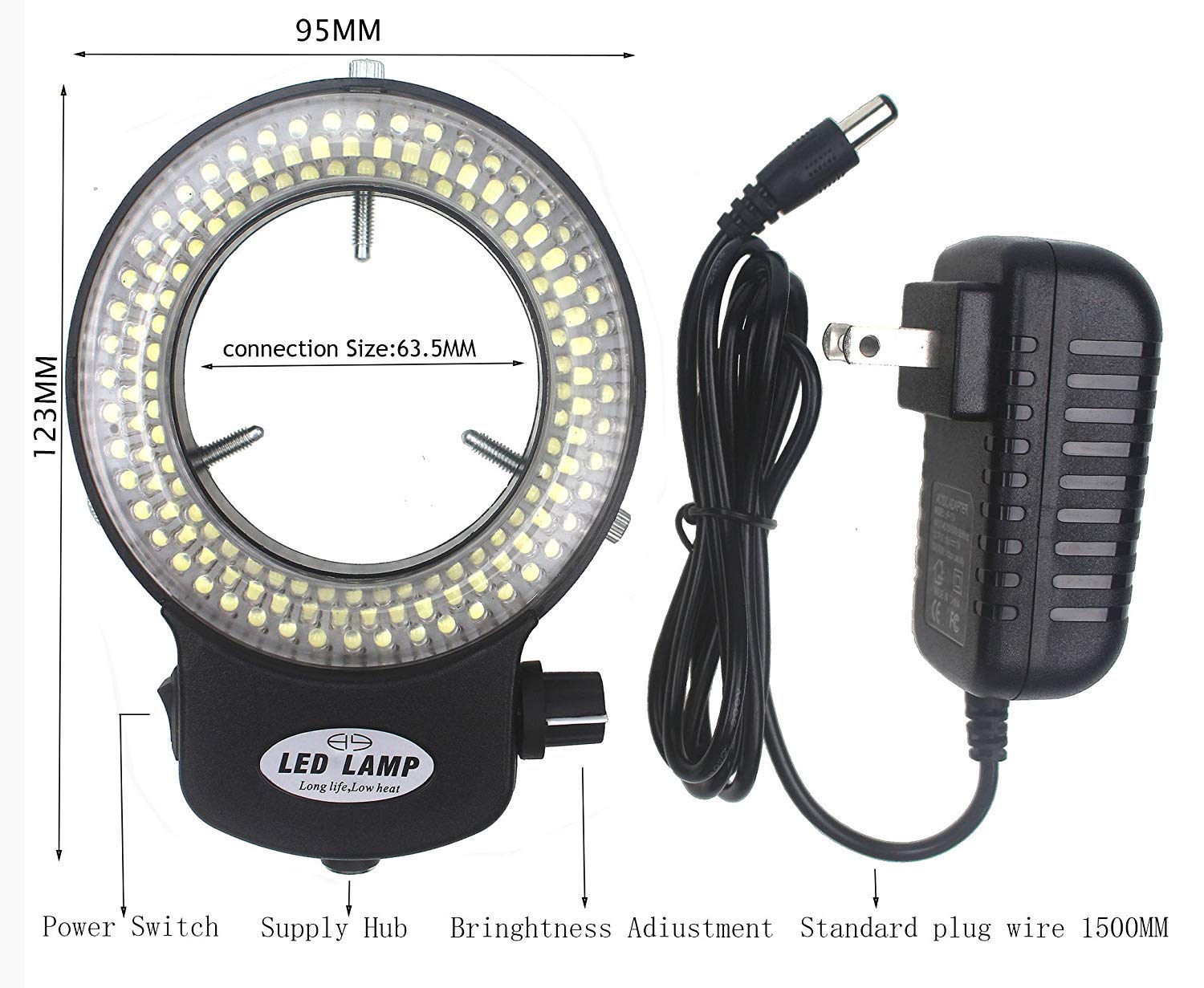 ☞144 LED ring light provides cool,strong focus without shadow illumination.