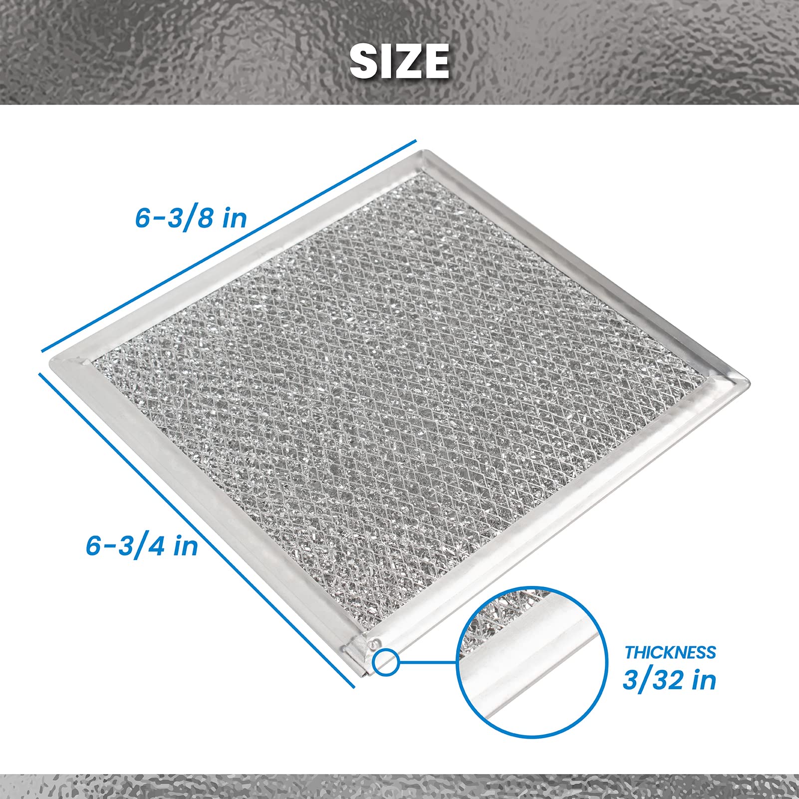ANTOBLE AP5306190 DE63-00666A WB02X11534 Microwave Aluminum Mesh Grease Filter for Samsung Size Measures 6-3/8" x 6-3/4" x 3/32" Contants 2 filters Compatibility smh16226, smh1611w, smh9207st, me21r7051ss, me21r7051sg, me20h705mss, me19r7041fs, me18h704sfs, smh1622b, smh1816b, wbo2x11534, smh1816b, smh1816s, smh1816w, smh1816w, smh1926b, smh1926b, smh1926s, smh1926s, smh1926w, smh2117s , smh2117s, smh2117s, smh2117s, mc17j8000cg, mc17j8000cg, mc17j8000cs, mc17j8000cs, mc17j8000cs, me16h702seb, me16h702seb, me16h702ses, me16h702ses, me16h702sew, me16h702sew, me16k3000ab, and more NOTE: Look up the manual to check if there is a number or size for your model High Quality Aluminum mesh filters are made of durable high quality materials and tested by manuafactuer to meet OEM standards.
