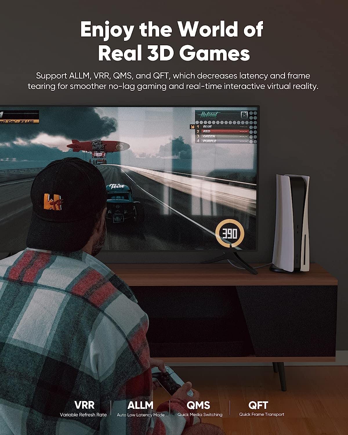 For Game Enthusiasts: This 8K Ultra High Speed HDMI Cable can achieve a super smooth picture of 4K@120HZ. Its latest game mode supports variable refresh rate, maximizes the value of the graphics card and CPU to obtain a smoother and more detailed picture.