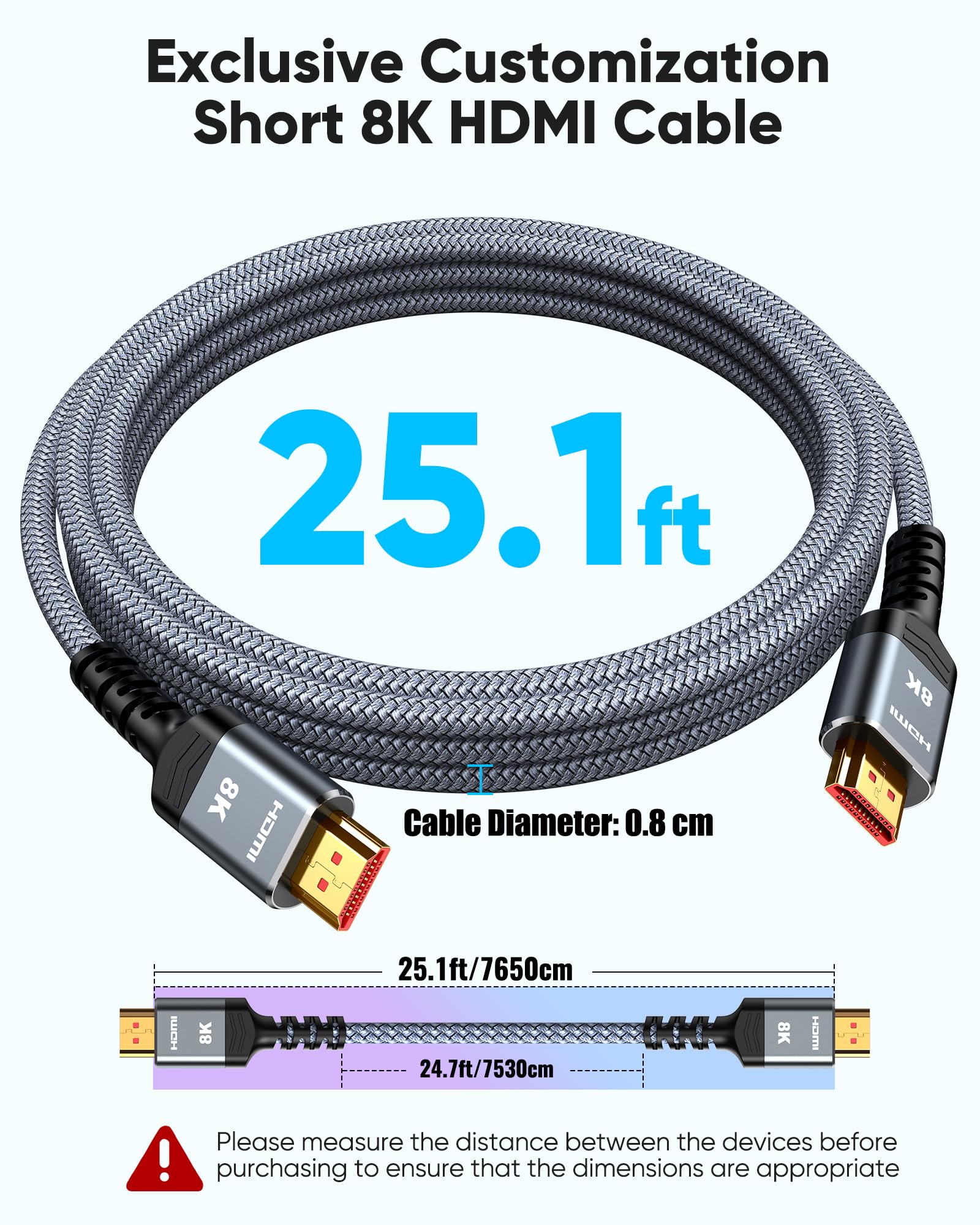 Reinforced high-quality materials: This 8K HDMI Cord uses Highwings' most popular classic style. The tail's anti-bending design has been upgraded to make it more durable. The military grade tensile nylon material also greatly extends its life.