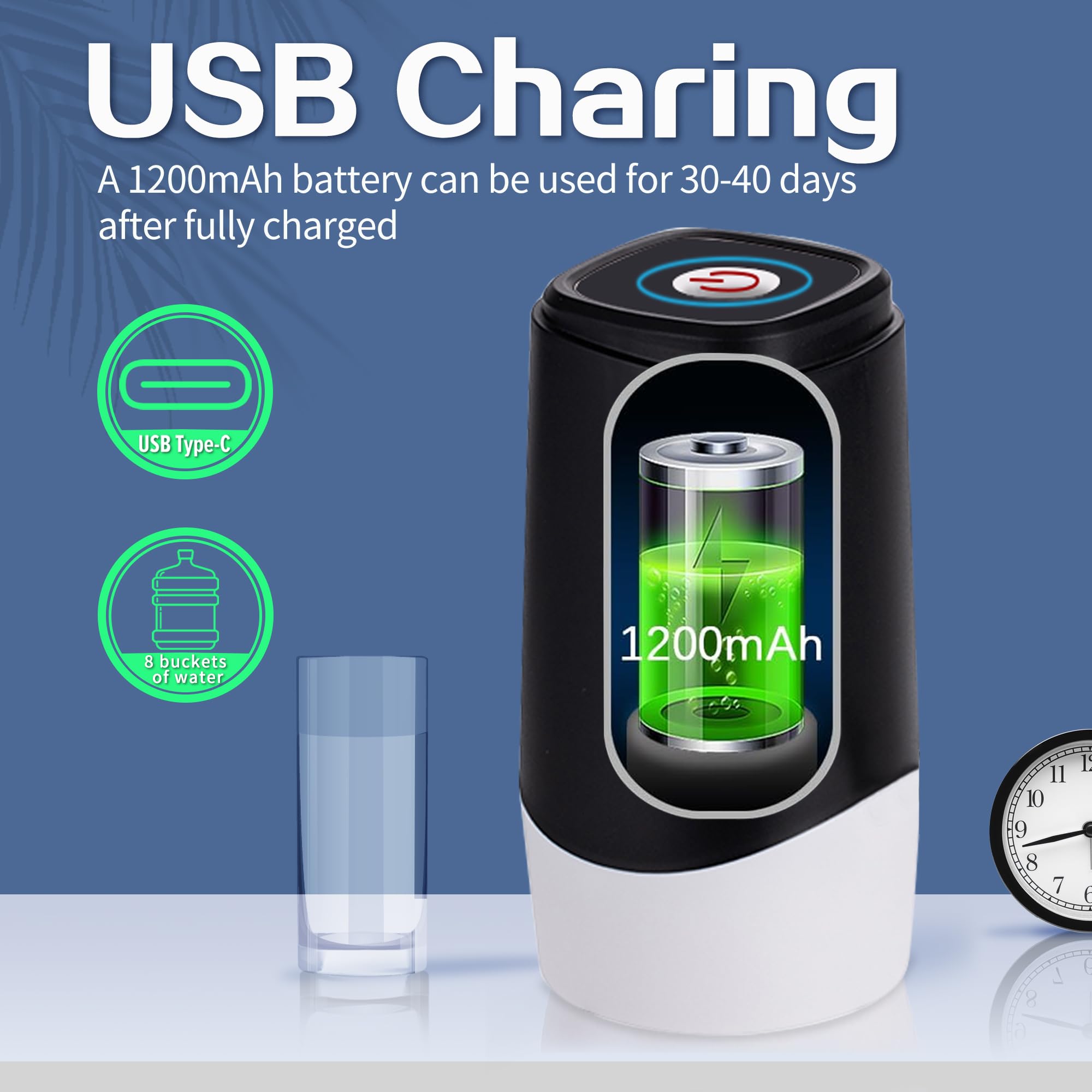 【Electric Water Pump with Rechargeable Battery】Korser water bottle pump has a built-in rechargeable 1200 mAh lithium battery, the battery design ensures high efficiency and long service life, you can charge it quickly via the Type-C interface. After fully charged, water dispenser can use about 4-8 bottles of 5 gallons of water, meeting the daily needs of a family