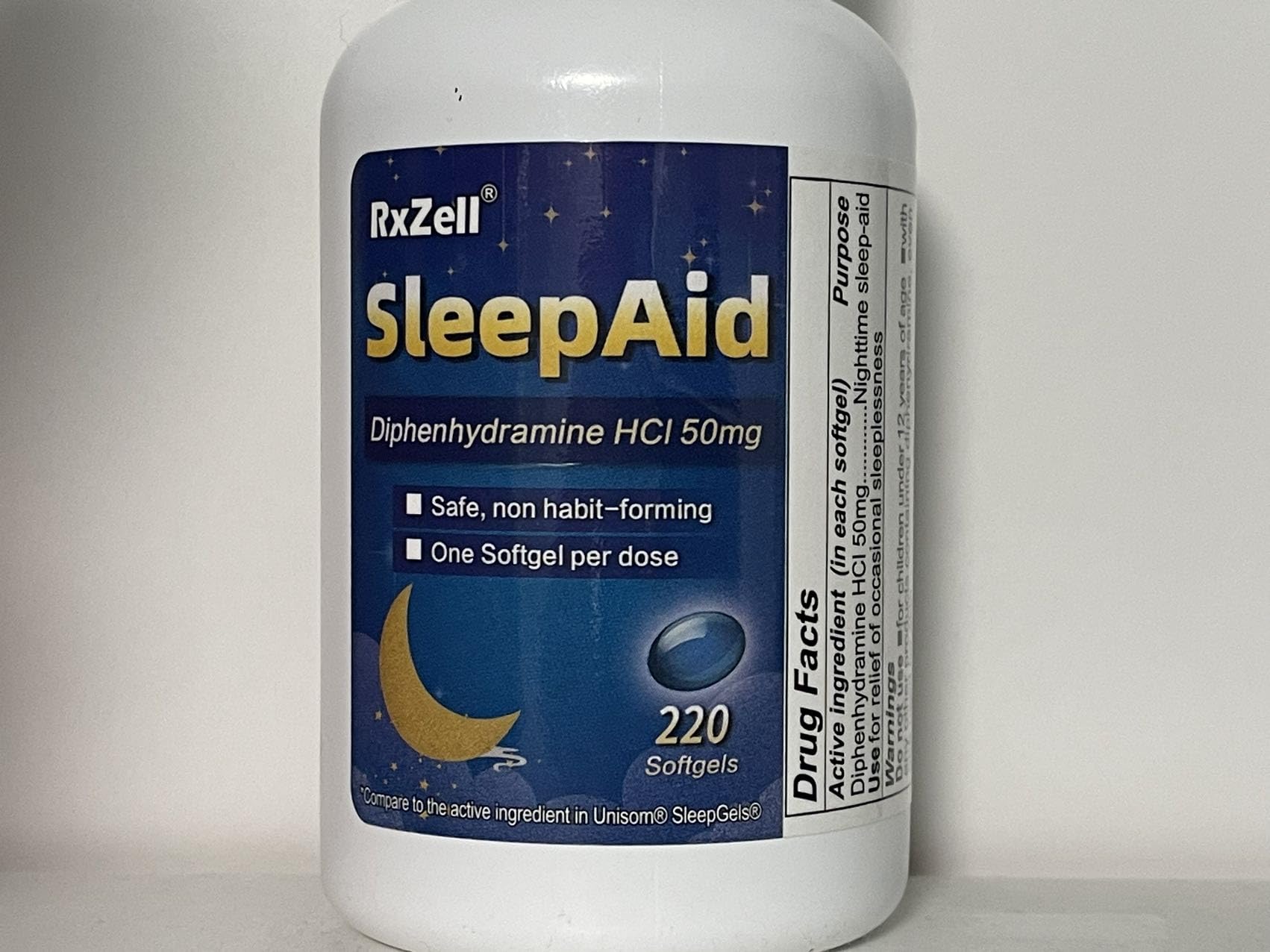 NIGHTTIME SLEEP-AID - one softgel before bed. Safe and non habit-forming. Helps you reach deeper, restful sleep at night.