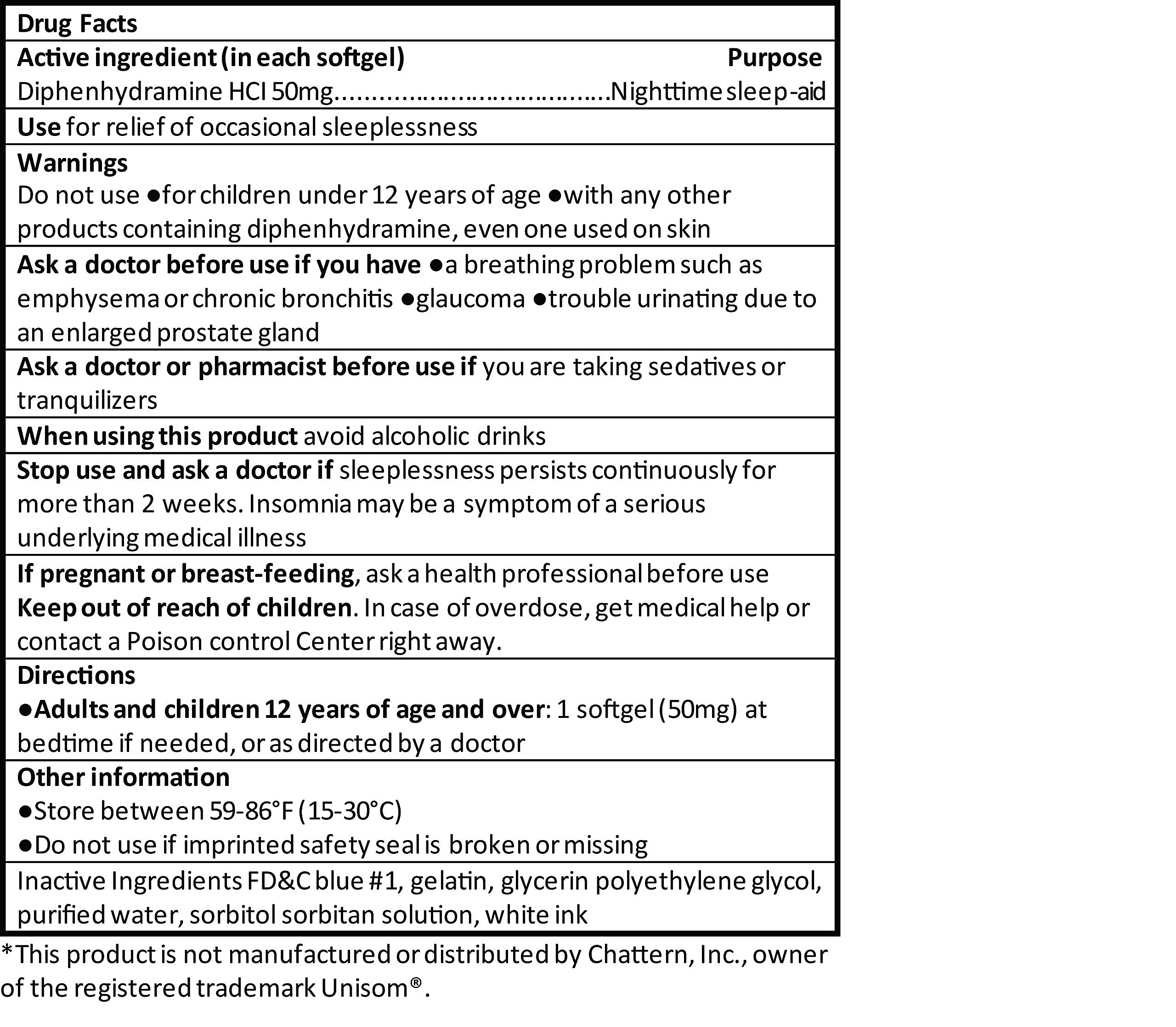 ACTIVE INGREDIENT - Diphenhydramine HCl 50mg