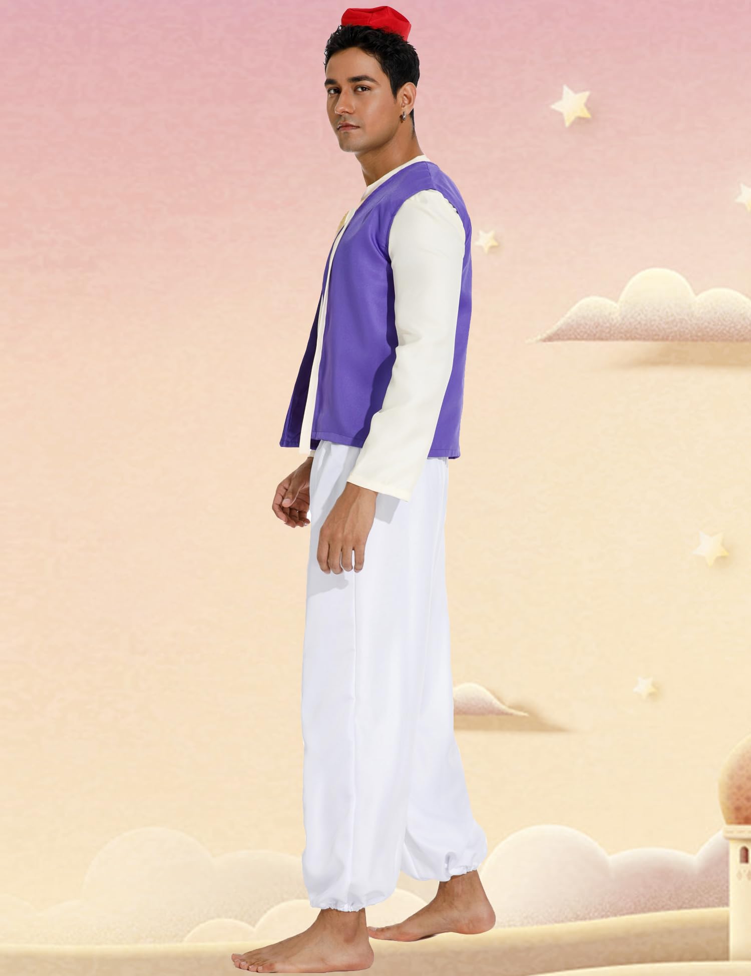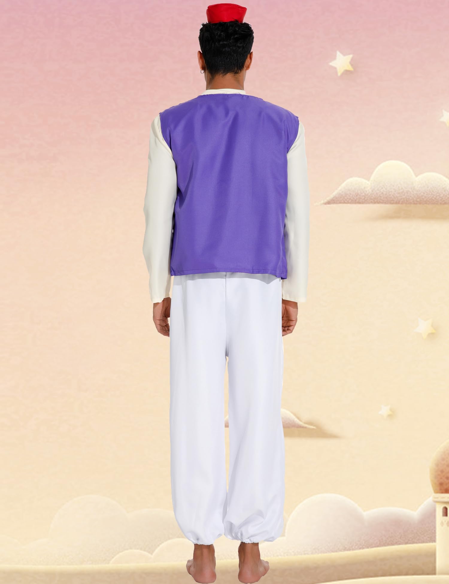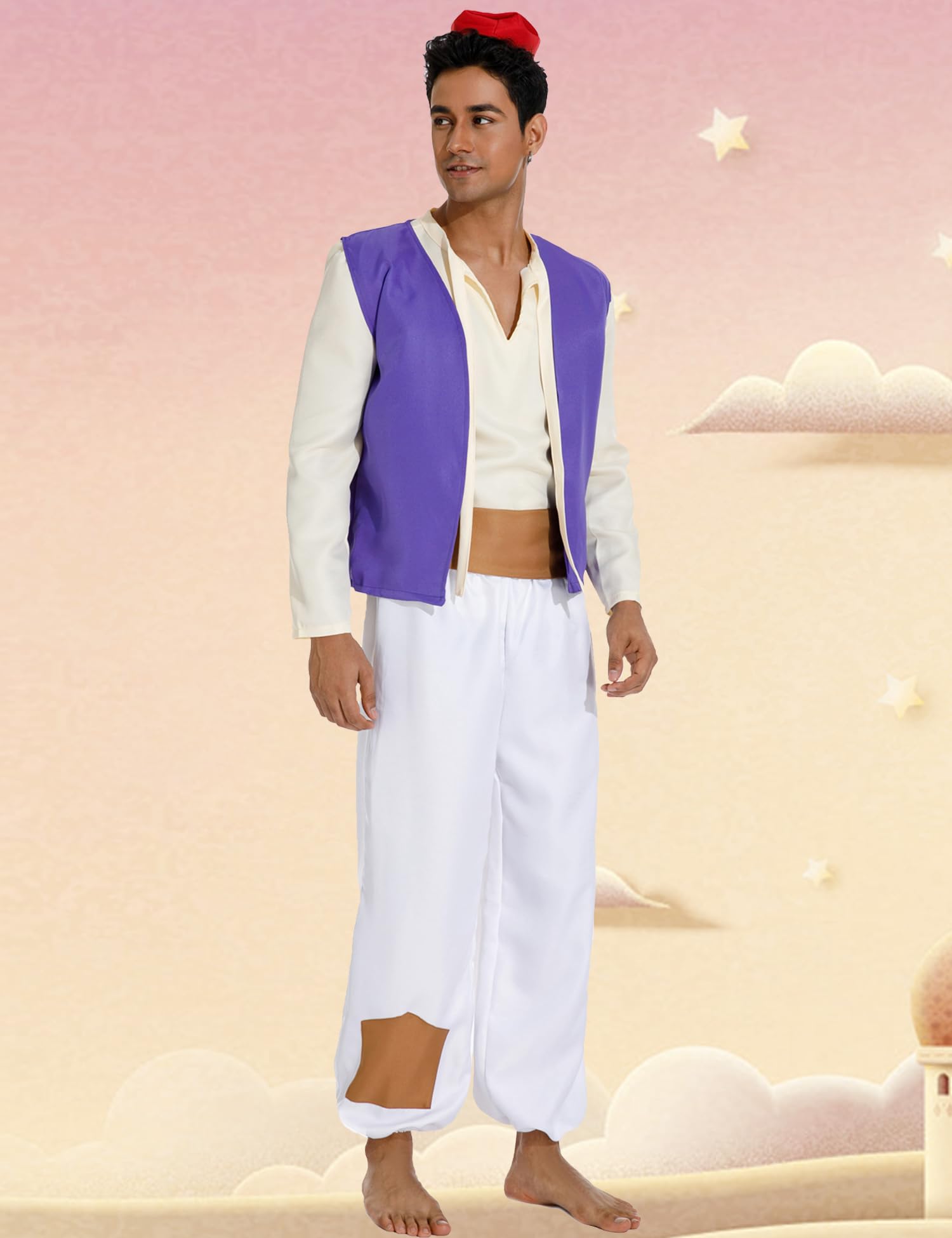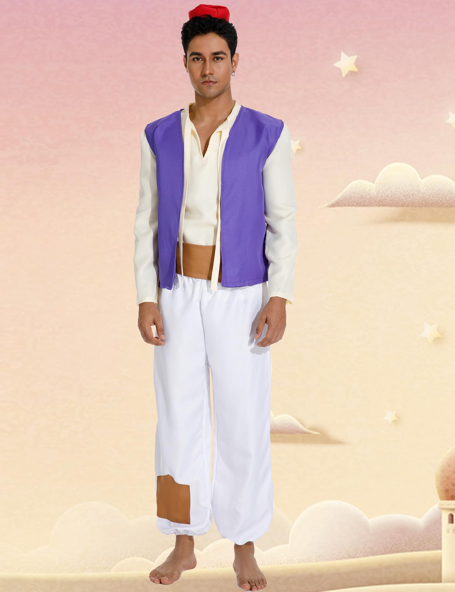 Packing: Red Hat + Purple Vest + Beige Shirts + Brown Belt + White Pants