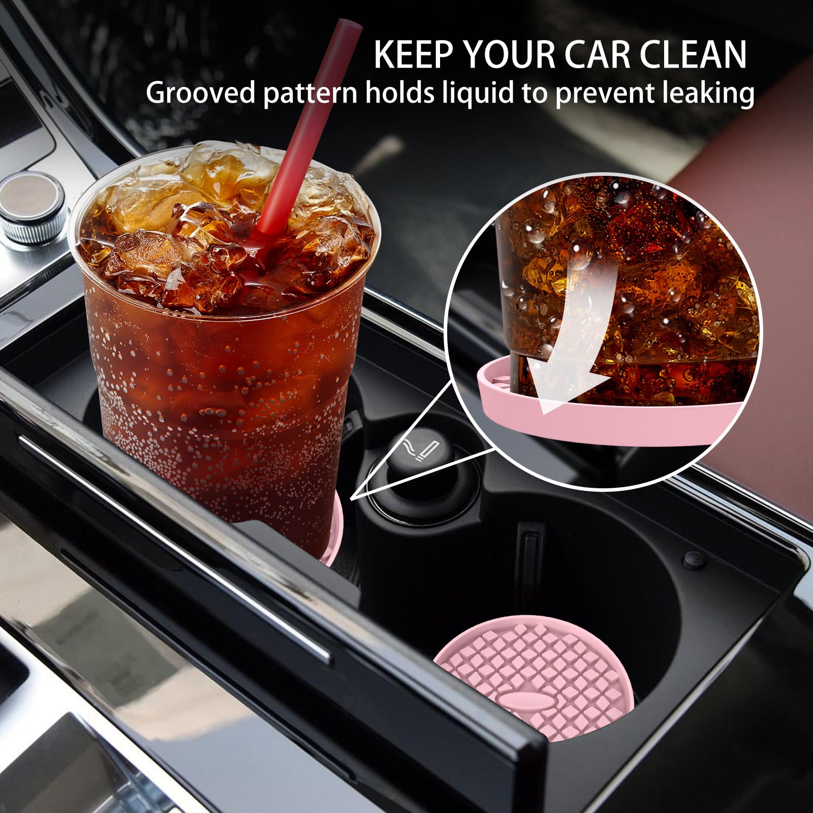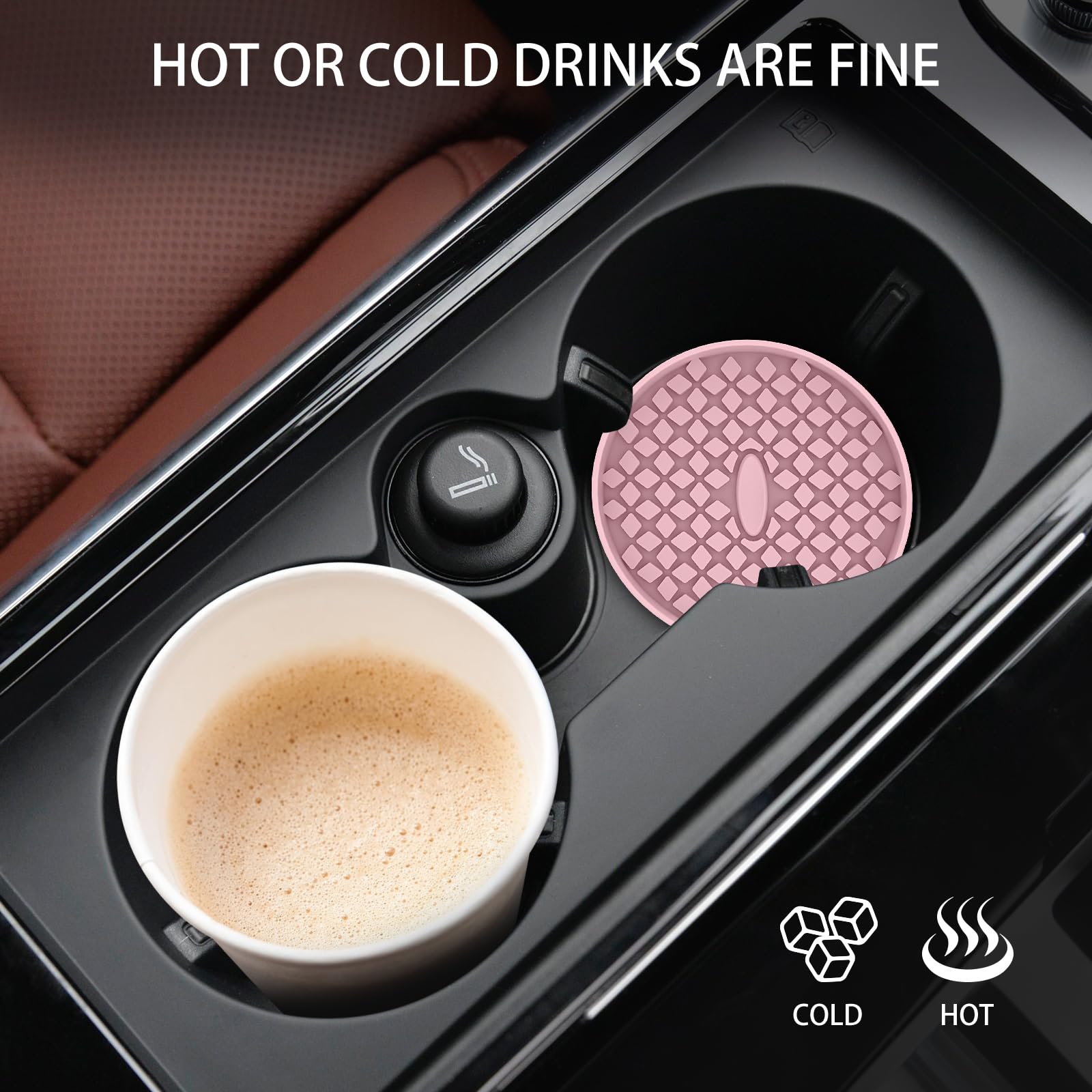 LONG-TERM USE & HEAT RESISTANT & DISHWASHER AVAILABLE: The car coasters are made of food grade silicone, soft flexible. Heat resistant range from -40F to 480F, can be used for cold or hot drinks in car. If it gets dirty, just throw it in the dishwasher.