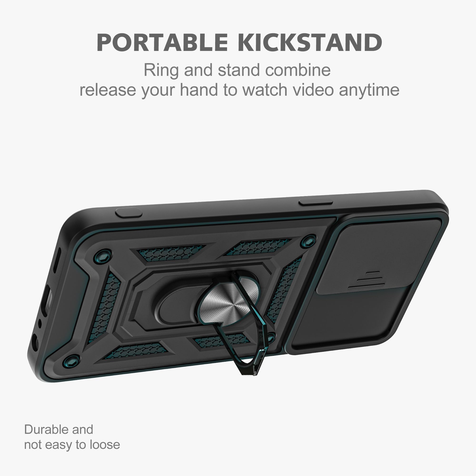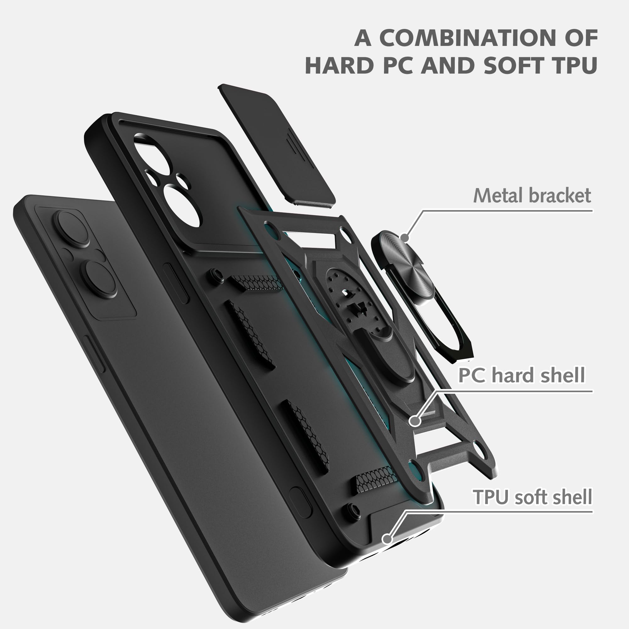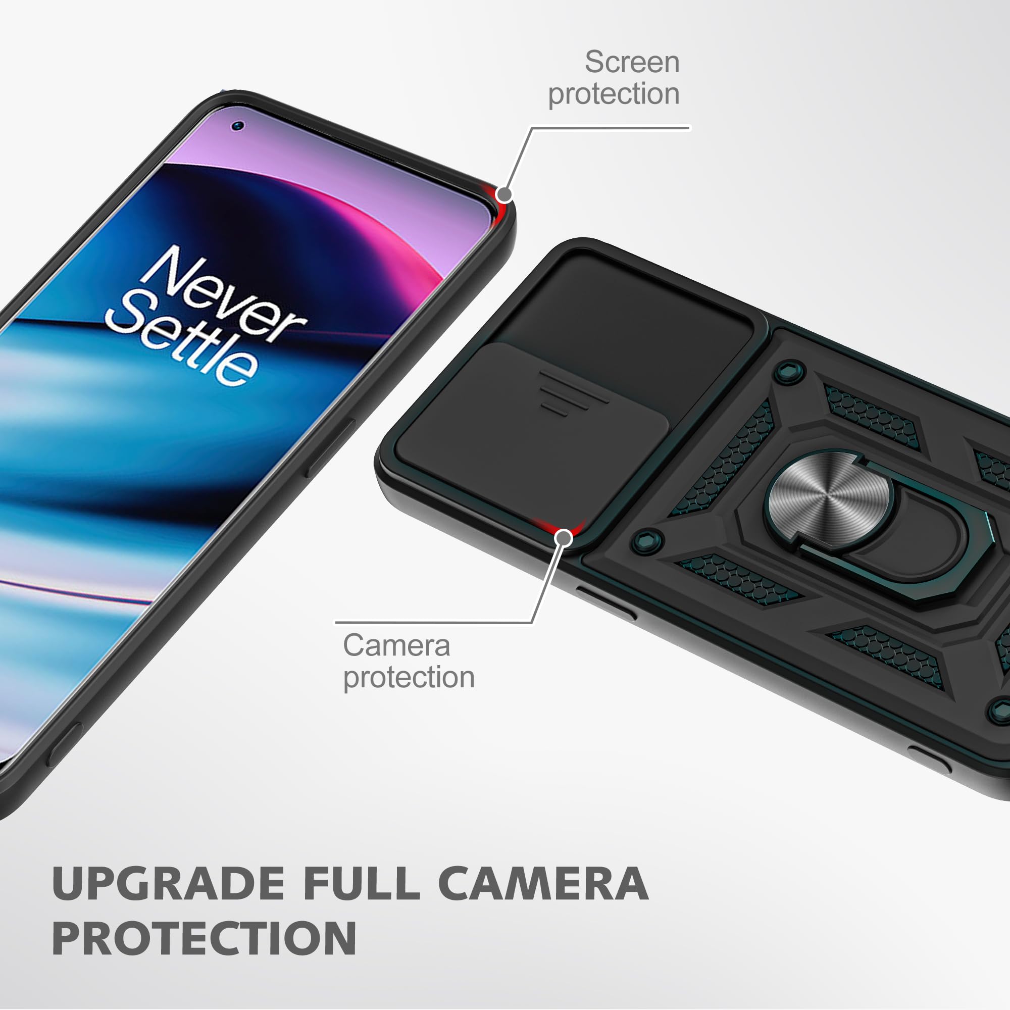 Military Grade Shockproof Camera Cover Phone Case Attention: Please verify your phone brand model before purchasing Compatible: OnePlus Nord N20 5G. (You can check your phone model from the phone setting) Product Features: 1.The OnePlus Nord N20 5G case with the camera slide cover adopts a unique lens slide cover design. The lens slide cover can slide left and right, and the sliding cover is smooth and does not get stuck. Protect your phone's lens from damage while maintaining privacy. 2.Dual-Layer design, heavy-duty protection, made with high-quality hard PC outer layer and soft TPU inner layer. 3.Precise cut openings allow full access to all buttons and ports featuring raised bezel to lift screen and camera off flat surface。 4.360° Rotable Kickstand Design, convenient video browsing;Unique patented technology design, PC integrated shell material, bearing capacity is stronger, firm and not easy to fall off;It can be placed on the table smoothly without wearing out the shell of the phone; 5.Outer layer special textured design provides visual impact, non-slip, anti-scratch, and durable features. 6.[ Military Grade ] 15ft Drop Tested Protective Case. Packing: 1 x phone case 2 x 2pcs HD Screen Protector to provide more comprehensive protection for your phone. Buyer's early confirmation will be highly appreciated after receiving the items. Thank you!