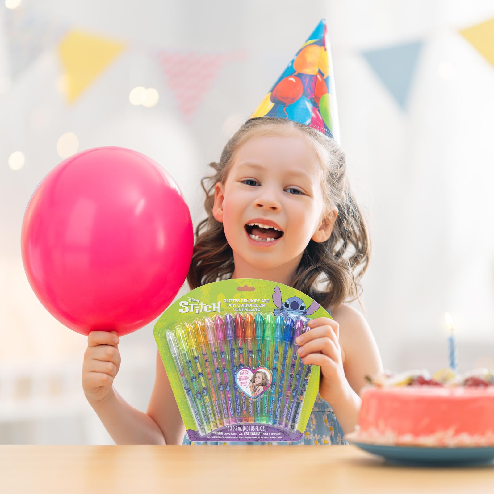 Let your little one’s creative side unleash with our Stitch glitter body art pen set. Every girl, young and old, will want to show off her sparkling style and this set is just the way to do it. With 16 different glitter pens, she and her friends can safely tattoo their body, alongside their favorite blue alien, Stitch. These pens will be everything she wants and more. With so many different colors to choose from, the fun is endless!