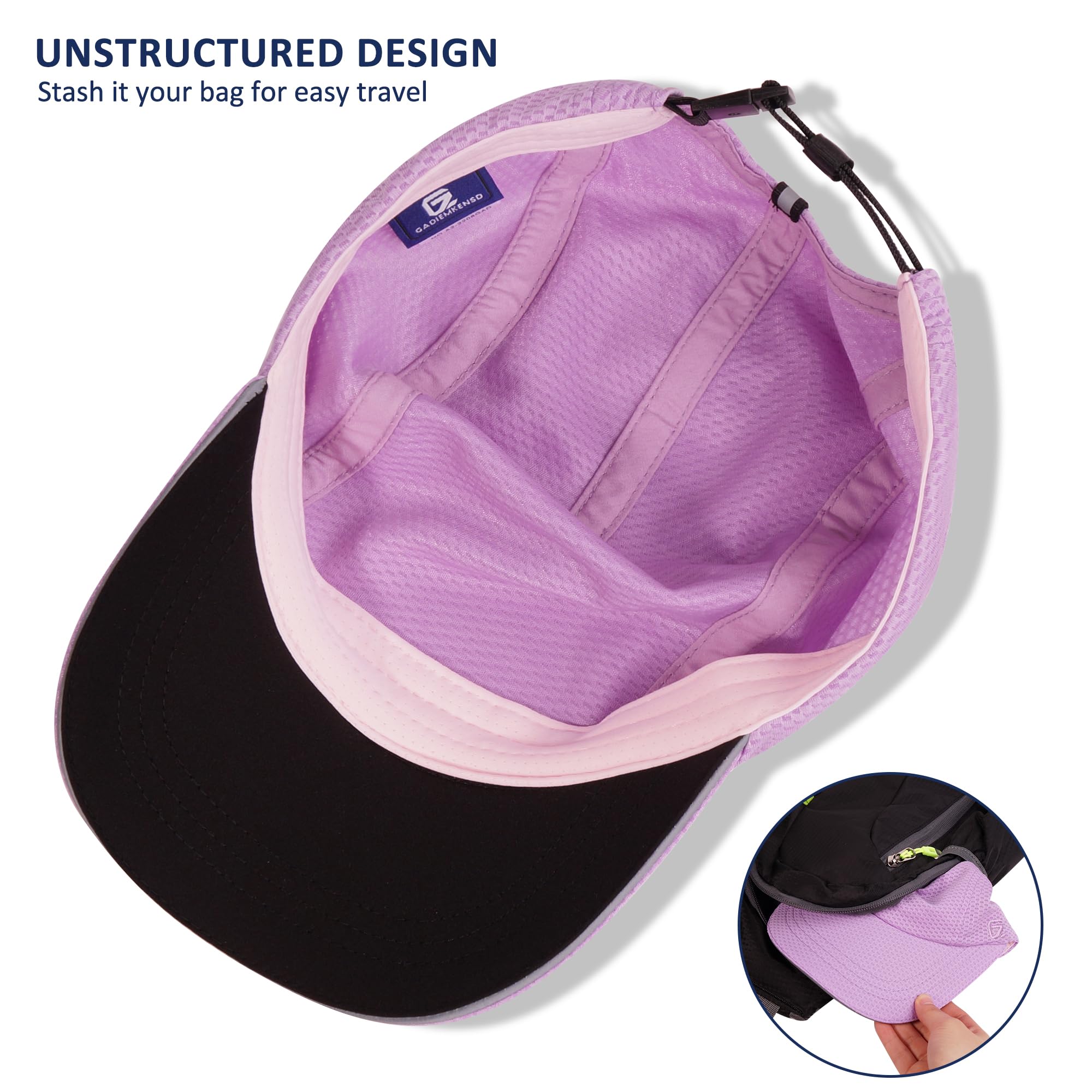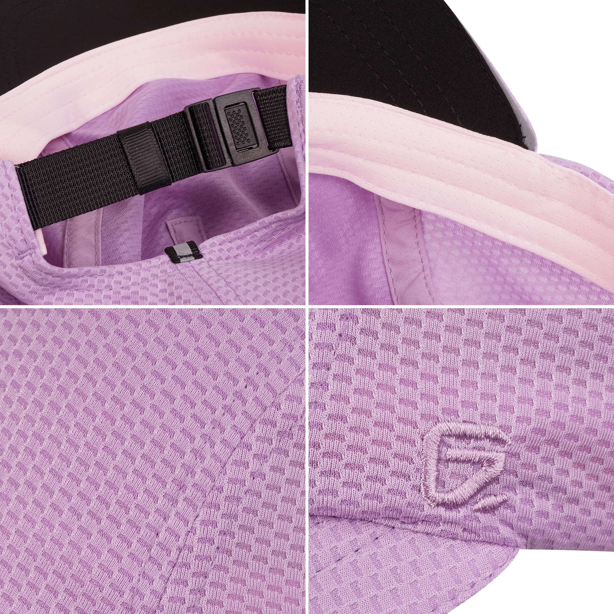 Retroreflective Safety Details: This cool sports cap for women features a stylish reflective ‘sandwich’ trim (also a small reflective details appears on the back) that enhances visibility and safety during those early morning and late afternoon running workouts