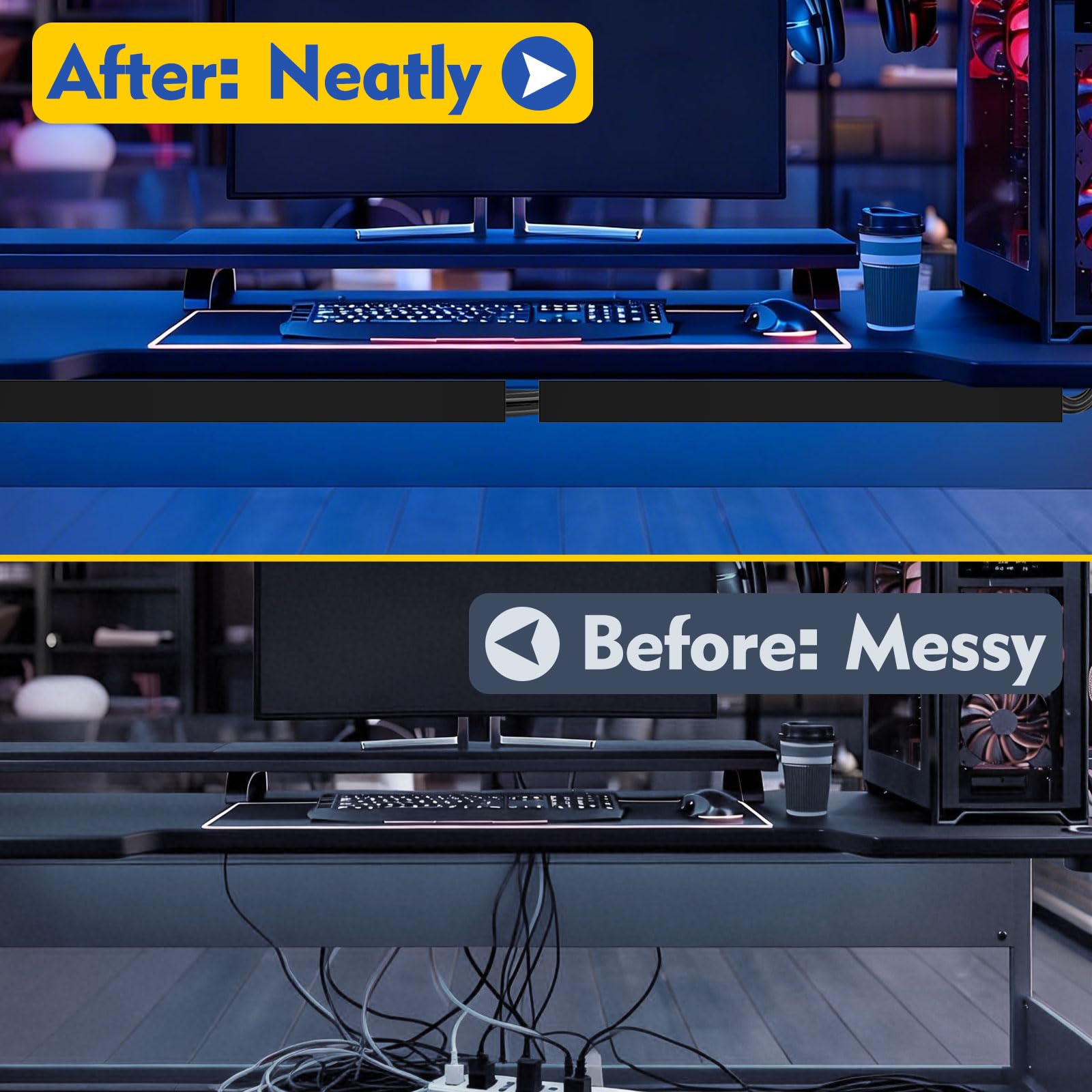 CABLE RACEWAY KIT : One-piece cable channel is a great accessory to hide and conceal clutter cables and cords under desk. Perfect for home entertainment system cables, TV wires and computer cords. Save space and keep home neat, protect your family and pets from unsafe cables