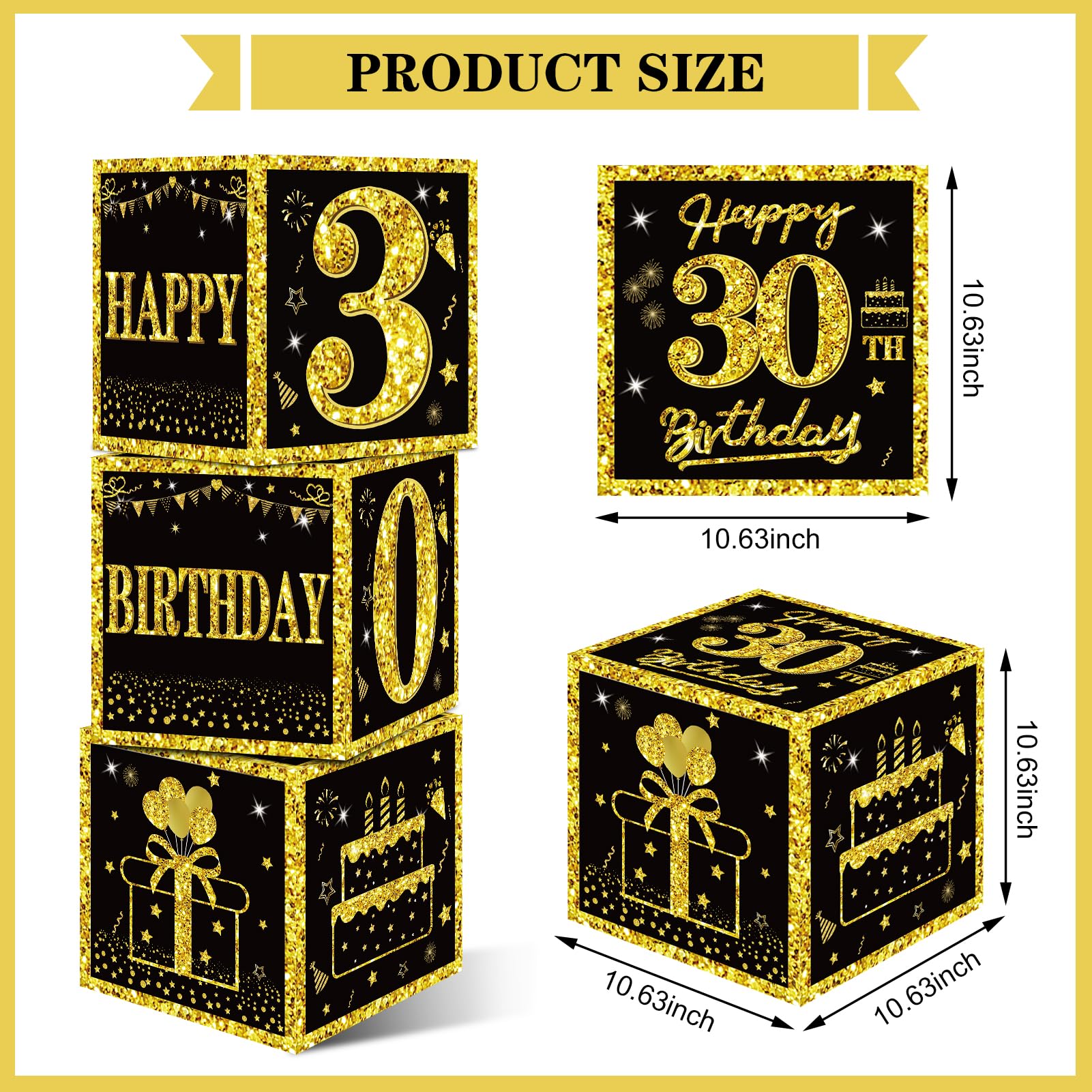 [You Will Receive] -3pcs black gold 30th birthday balloon boxes decorations, the size of each box is 10.62×10.62×10.62inch. This set of great 30th birthday party display decorations. (Note: This set of decorations does not include balloons).