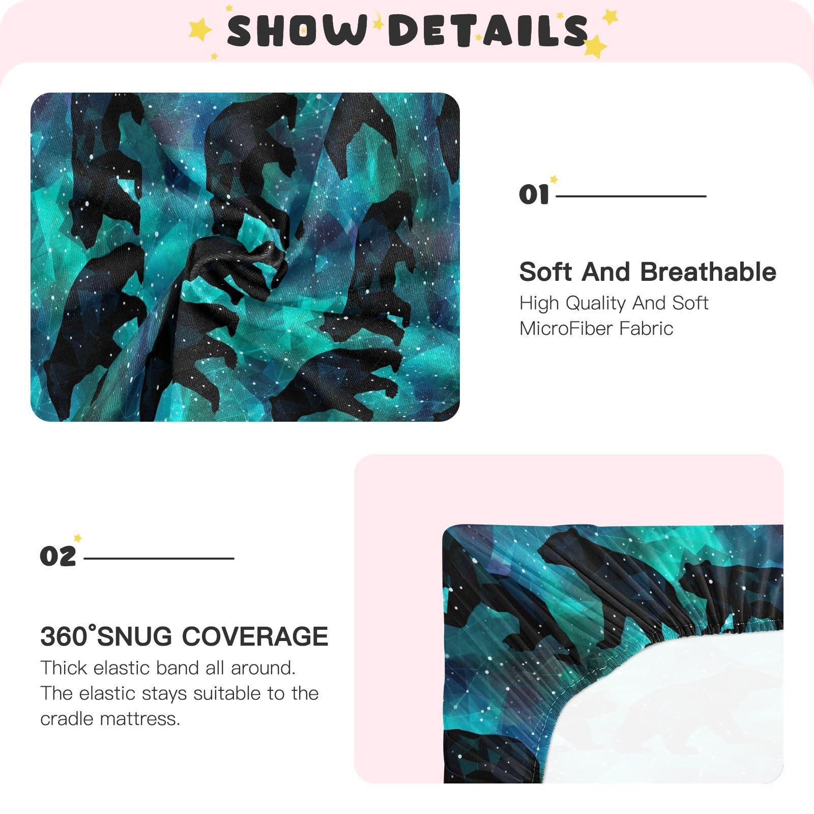 šŸ‘¼ć€Size怑Playard Sheet:39*27*5in(99*68*12.7cm) Crib Sheet:52*28*9in(132*71*23cm)