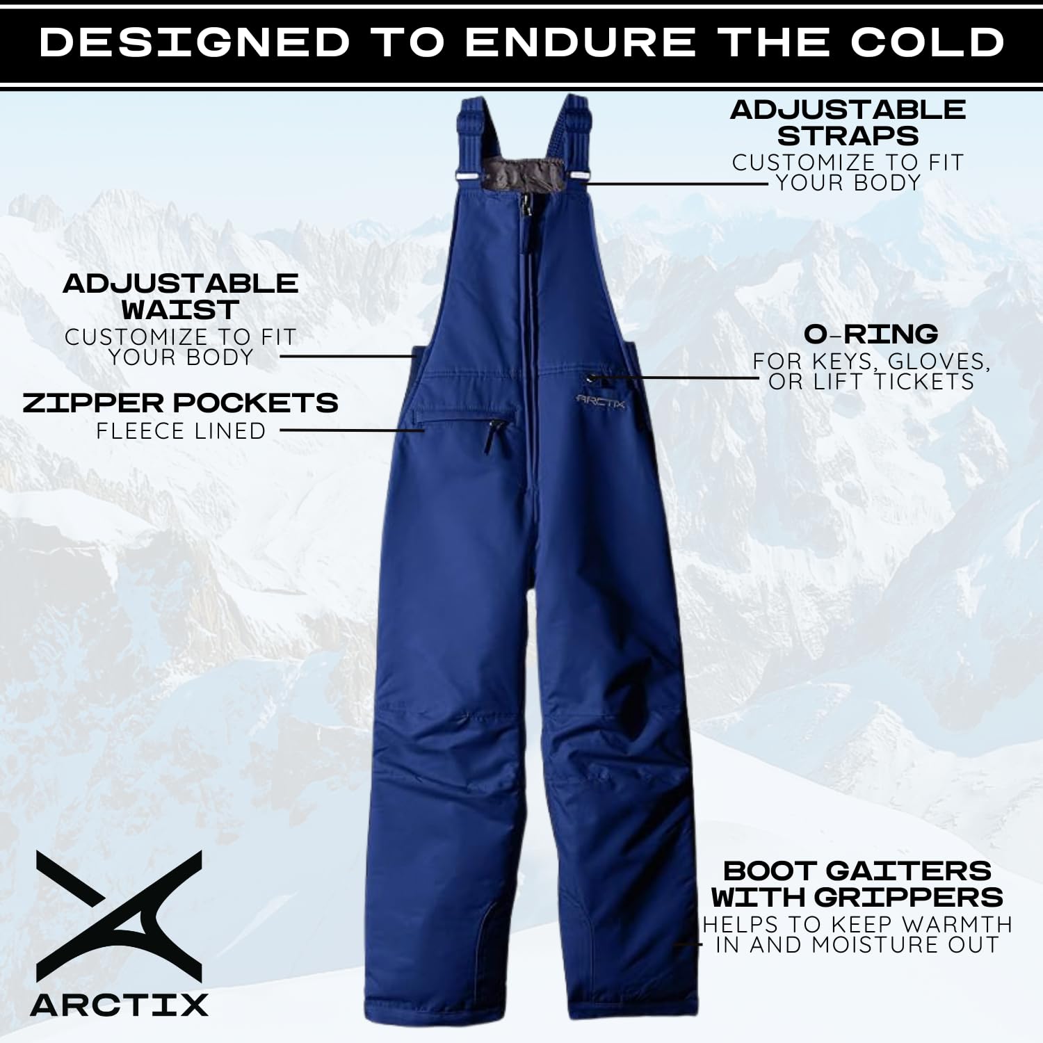 Description Season after season, the 1550 Arctix Youth Snow Bib Overalls serve as an outstanding value priced snow bib and a versatile cornerstone of the ARCTIX line. These pants feature a 100% Polyester Dobby shell with ThermaLock W/R + W/P 3000mm Coating, offering a maximum degree of durability and protection from the elements, while allowing a full range of motion. 85 grams ThermaTech Insulation offers warmth in a lightweight, low bulk garment, keeping you warm at temperatures from -20° to +35° depending on your level of activity. DWR finish (Durable Water Repellent) helps repel water from fabric surface. The adjustable comfort suspenders provide the perfect fit with elasticized side gussets for maximum motion. The boot gaiters with grippers form a seamless integration with the boots to keep the warmth in, and the moisture out. These relaxed fit pants also include 600 Denier Ballistic reinforced ankle, scuff and hem guards to hold up against daily wear & tear, and conveniently has an O-ring for keys, gloves and/or lift tickets. The pants provide zippered hand warmer style pockets, are water and wind resistant, and are machine washable.