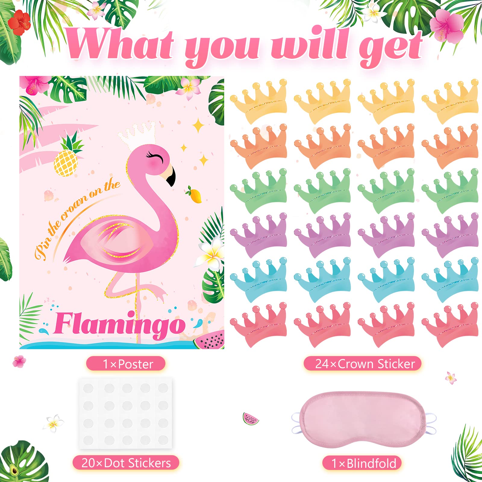 - UNIQUE DESIGN - Who can stick the crown on the flamingo most accurately? This great game ensures that the birthday child and his guests have a great time at the flamingo themed party.