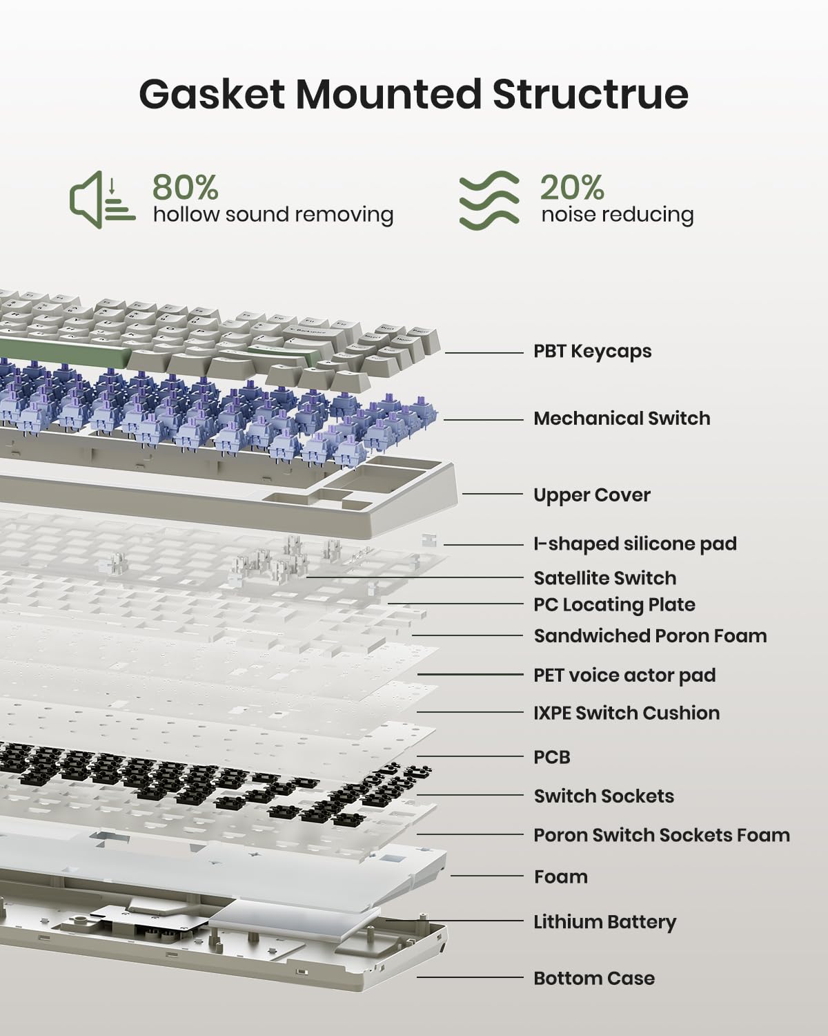 【Incredible Typing Experience Starts from Kisnt】Designed with your comfort in mind, We do everything right to get you obsessed with our keyboards. This clacky keyboard is absorbing sound effectively. Enhanced with base dampener, along with layers of sound-dampening foam, it delivers a satisfying “thocky” sound, Less hollow sounding, just indulge in pure typing bliss. If you're looking to upgrade from traditional keyboards to a creamy one with every keystroke feel consistent