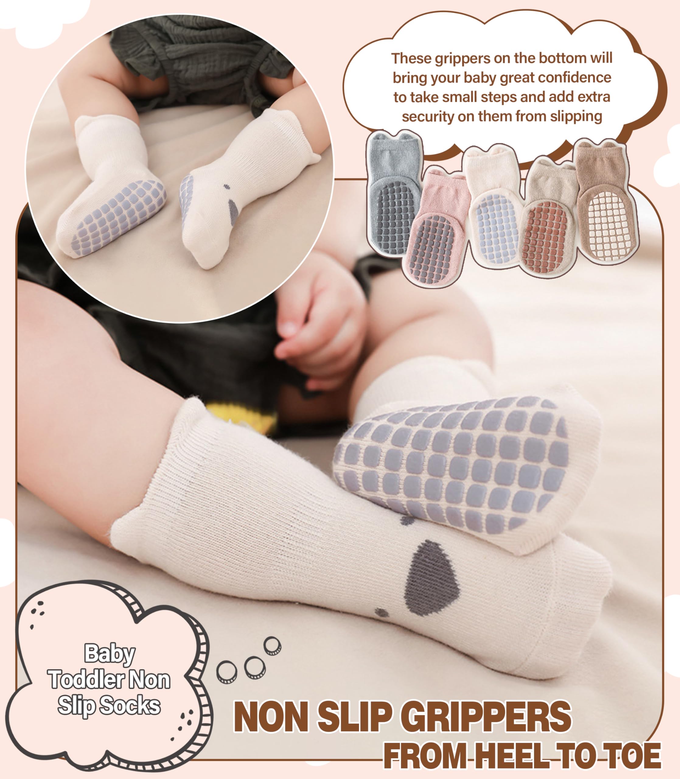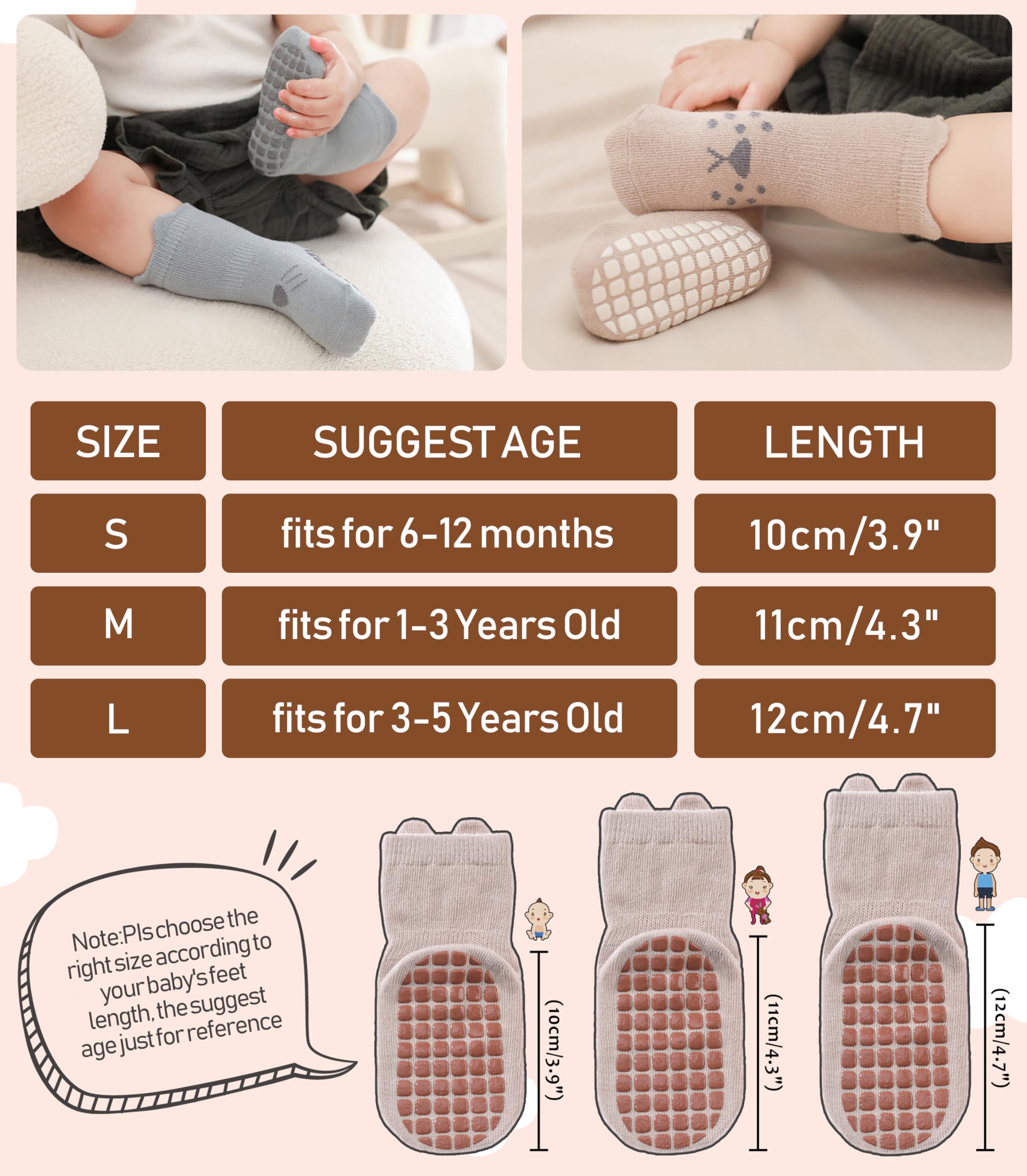 SUITABLE for MANY OCCASIONS - Medium thickness makes these baby toddler girl boy non slip socks suitable for all seasons and any occasions. Can fit in little shoes easily, suitable for all weather, easily match with multiple outfits. These baby toddler grip socks will keep little toes warm for baby toddler, elastic cuff and toe make baby's feet have a comfy experience.