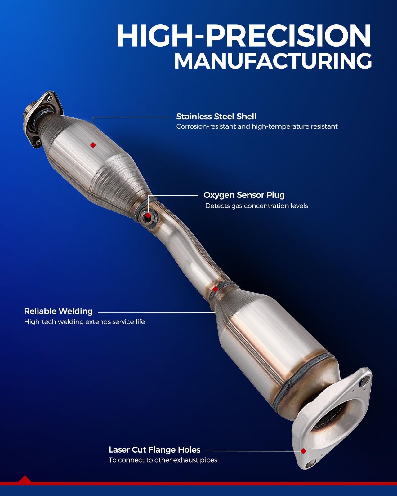 High Quality: The stainless steel body of high-quality aluminized pipes is not easy to rust, ensuring excellent oxygen storage capacity and long service life. The double-layer high temperature resistant ceramic carrier greatly increases the flow rate and surface area, thereby improving power and fuel economy