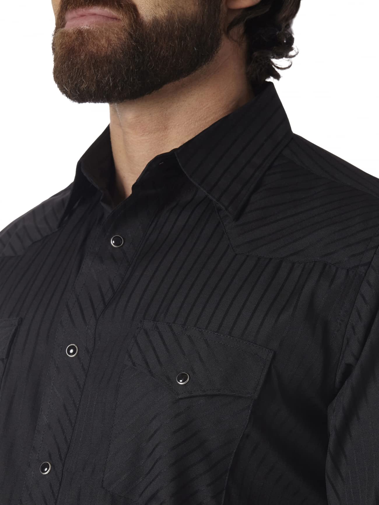 Description Since 1947, Wrangler has maintained a relentless commitment to quality apparel built to fit your life. Wrangler fills your closet with authentic snap shirts, tees, jackets and authentic western denim that keep you comfortable in true western style. Our shirts feature iconic details such as pearl snaps, pointed yokes, βWβ stitching on the pockets, and spread collars. Jeans come in 100% heavyweight denim or with a bit of stretch for extra comfort and feature a Wrangler patch, W stitching on pockets and classic 5 pocket styling. Crafted with care, our western line is made for men who start their day before the sun comes up and wonβt stop working until the job is done. This is Wrangler, made for you.