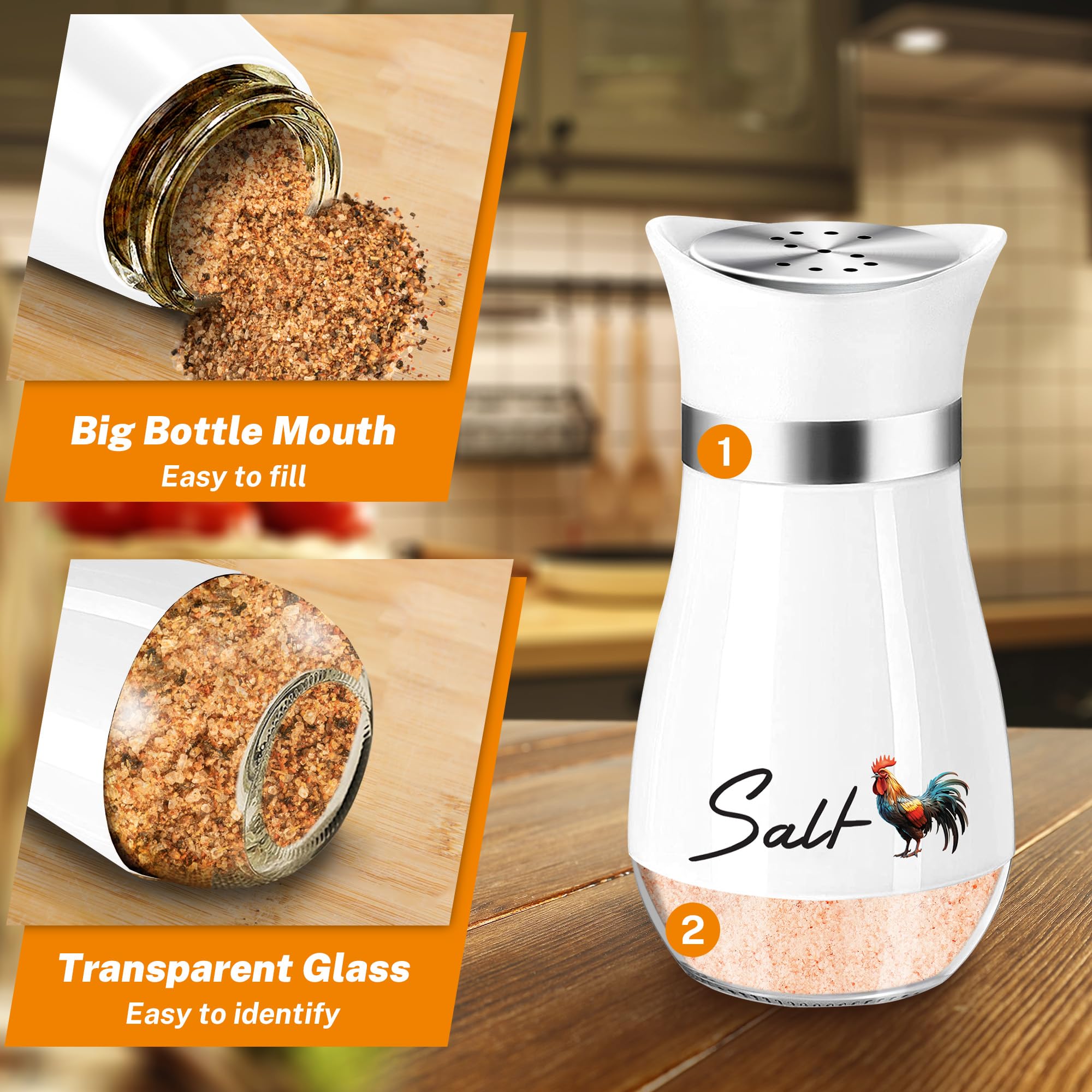 Super Cute Farmhouse Design:This salt and pepper shaker set comes in a Refillable Design for modern and farmhouse style kitchens, dining rooms and tables. They has the words "salt" and "pepper" printed on them, so you don't have to worry about holding the wrong shaker when using it. It is pleasing to the eye and practical at the same time.
