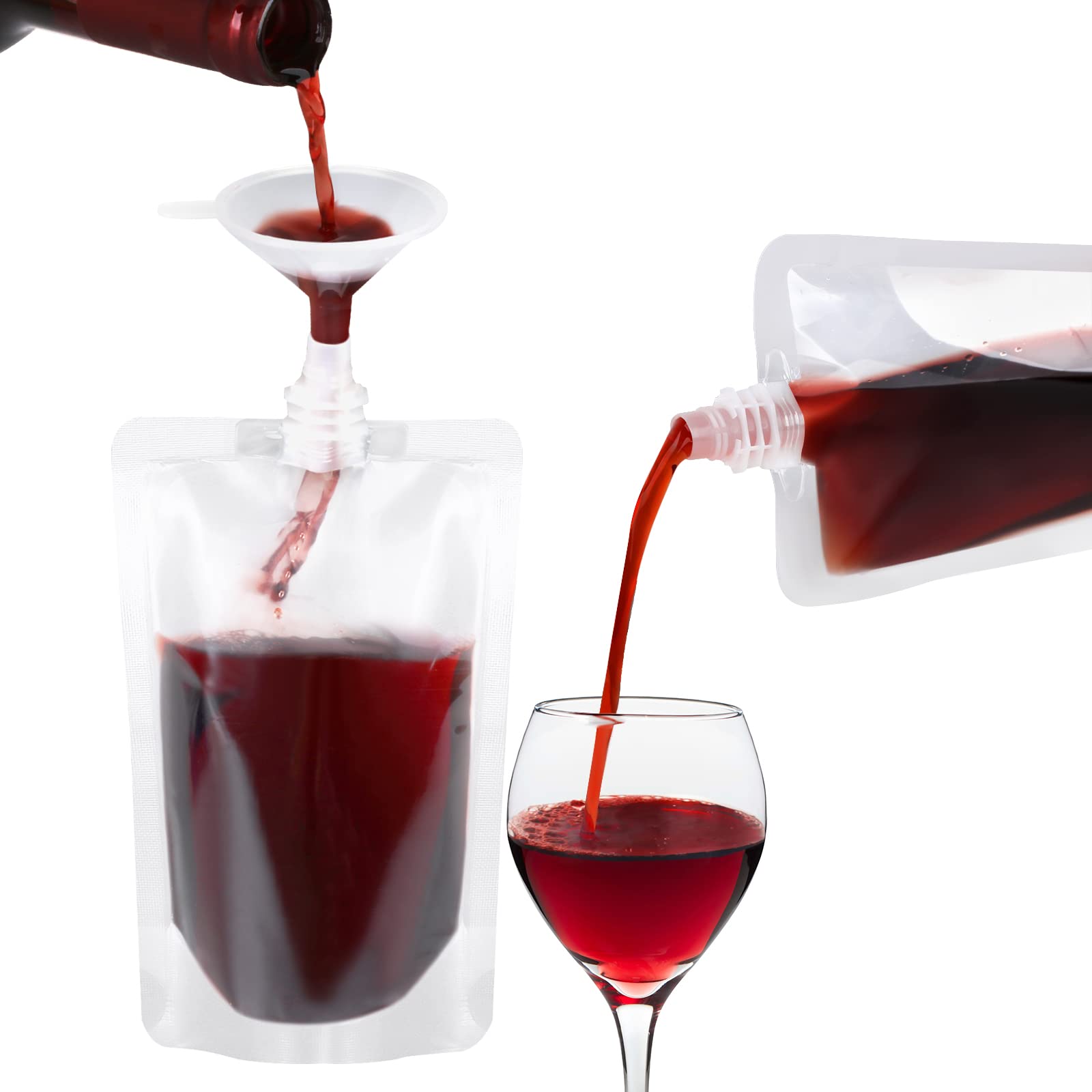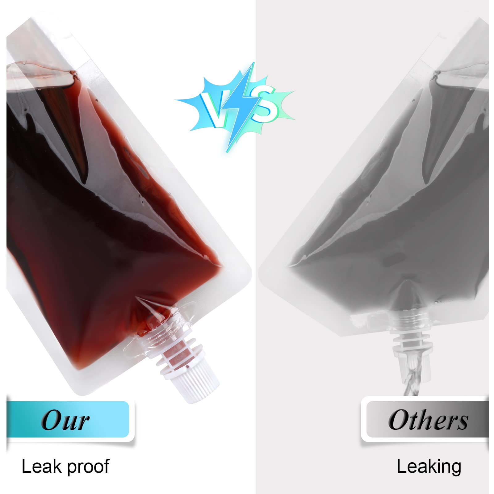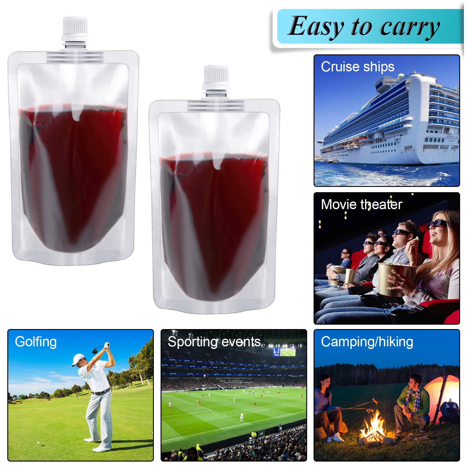 CONVENIENT FOR MULTIPLE SCENARIOS: The screw cap of the drink pouches can help seal the bag, prevent leakage, is not easy to break, and can be used for a long time, which is very helpful for carrying out. Ideal for camping, backpacking, outdoor activities, survival kits, concerts, events, and holidays.