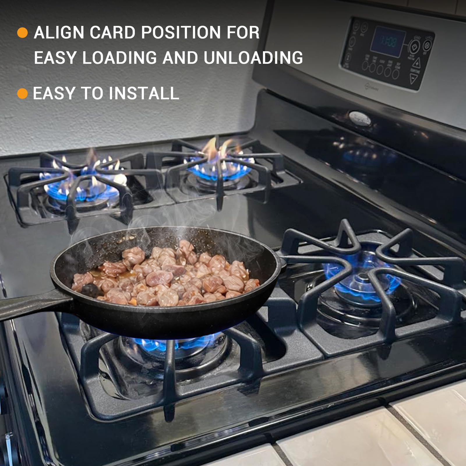 Premium and Healthy Cast Iron Construction:Stove burner covers fits Whirlpool gas stove parts crafted from high-density cast iron for excellent heat resistance and rigidity, delivering durable, long-lasting performance without warping. Finished with a matte coating to enhance slip resistance, helping keep cookware stable and improving safety and longevity