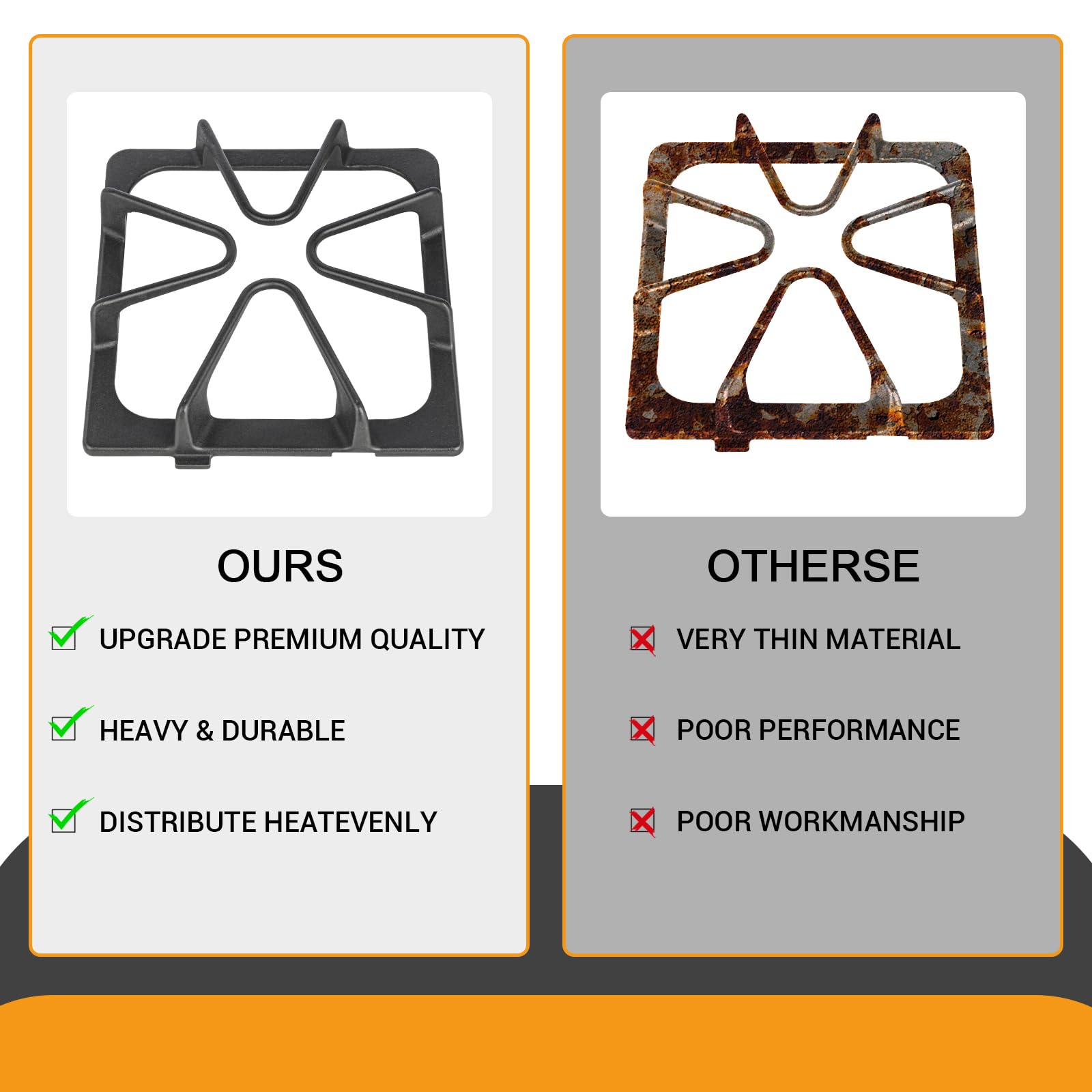 Exceptional Heat Distribution & User Experience:The amana stove parts gas stove grates sets design optimizes heat distribution to provide even heating across the cooktop, enabling multiple pots to be used simultaneously and boosting cooking efficiency. Whether sautéing, boiling, or frying, your cookware will receive consistent, even heat to help lock in flavors
