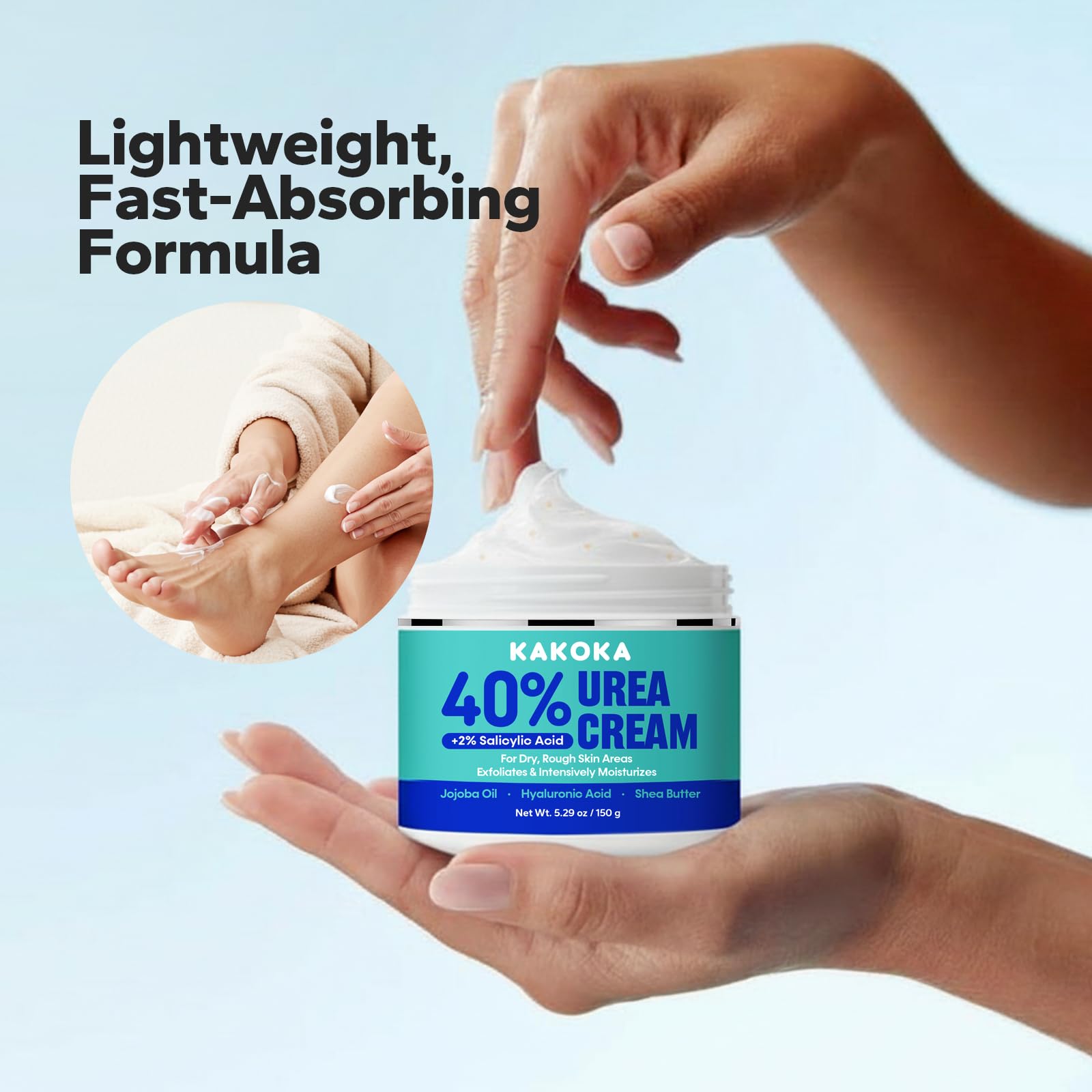 Multi-Action Formula:Our urea 40% cream combines Urea, Hyaluronic Acid, Jojoba Oil, and Shea Butter to deliver multiple skin benefits. Urea helps to soften excess keratin; Hyaluronic Acid aids in hydrating and locking in moisture; Jojoba Oil nourishes the skin; while Shea Butter helps to support the skin's natural barrier. This cream works to improve the feel of dry, rough skin.