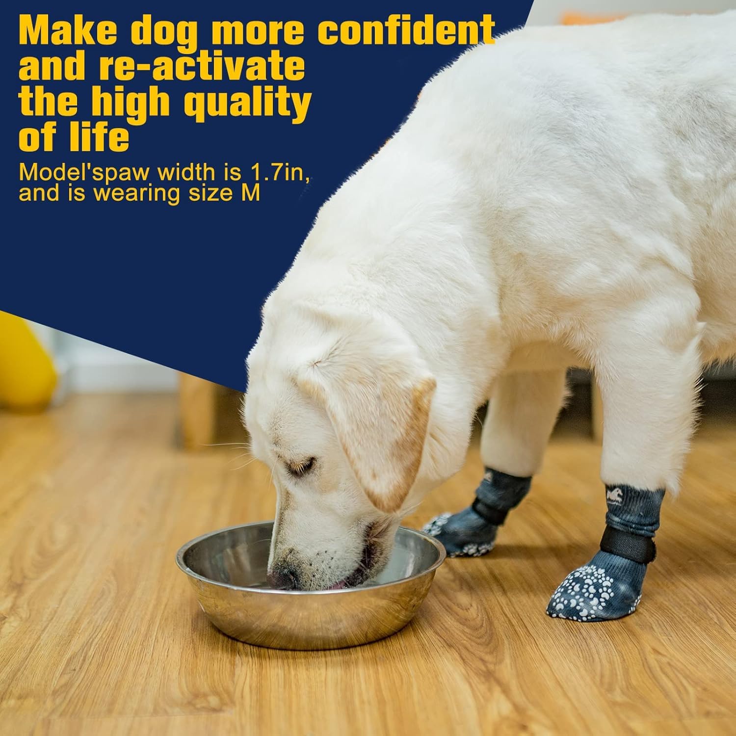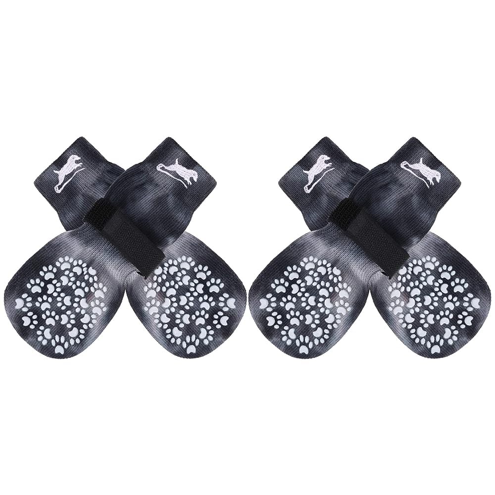 [Double Side No-Skid] It's our patent-exclusive design, Each side of the sock has [21 Cute Little Paw Grips] to provide strong extra traction when your dog is walking on the smooth floor. Even if the socks twist, they will still work. It's good for active dogs, and If your senior dogs has problems who was splaying and keeps slipping on your wooden floors with their back legs, it can help your old friends walk around in the house again!