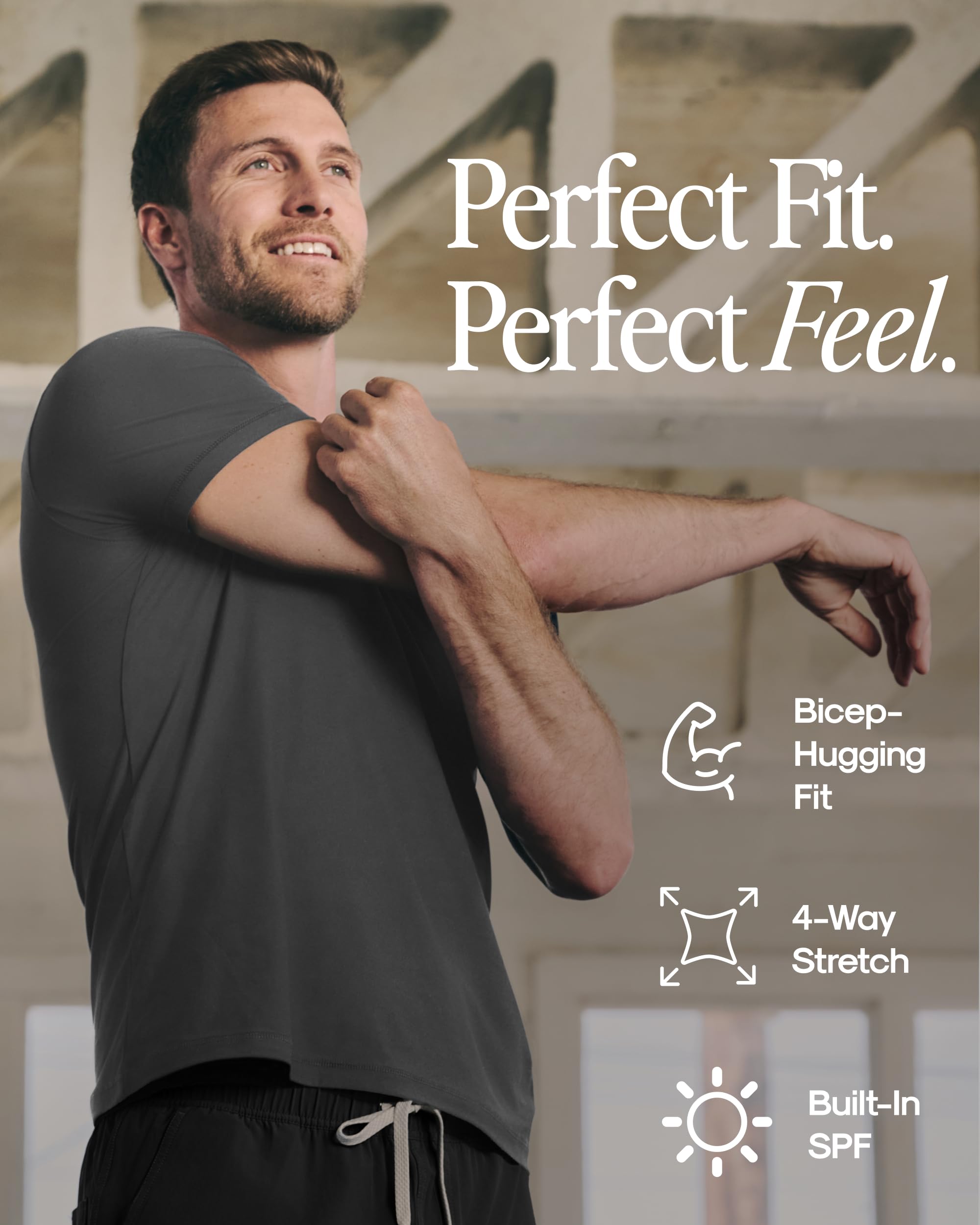 STAY COOL & DRY: Built-in moisture wicking and quick-dry fabric keep you fresh from warmups to cool downs. Breathable polyester-spandex blends help regulate airflow, making these gym shirts men rely on for all-day comfort.