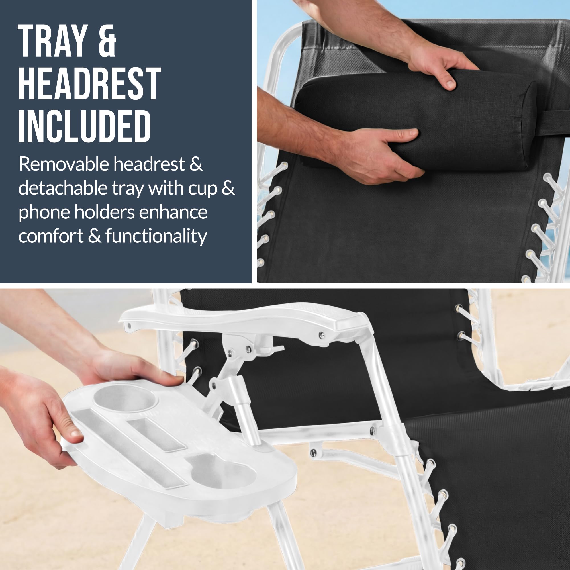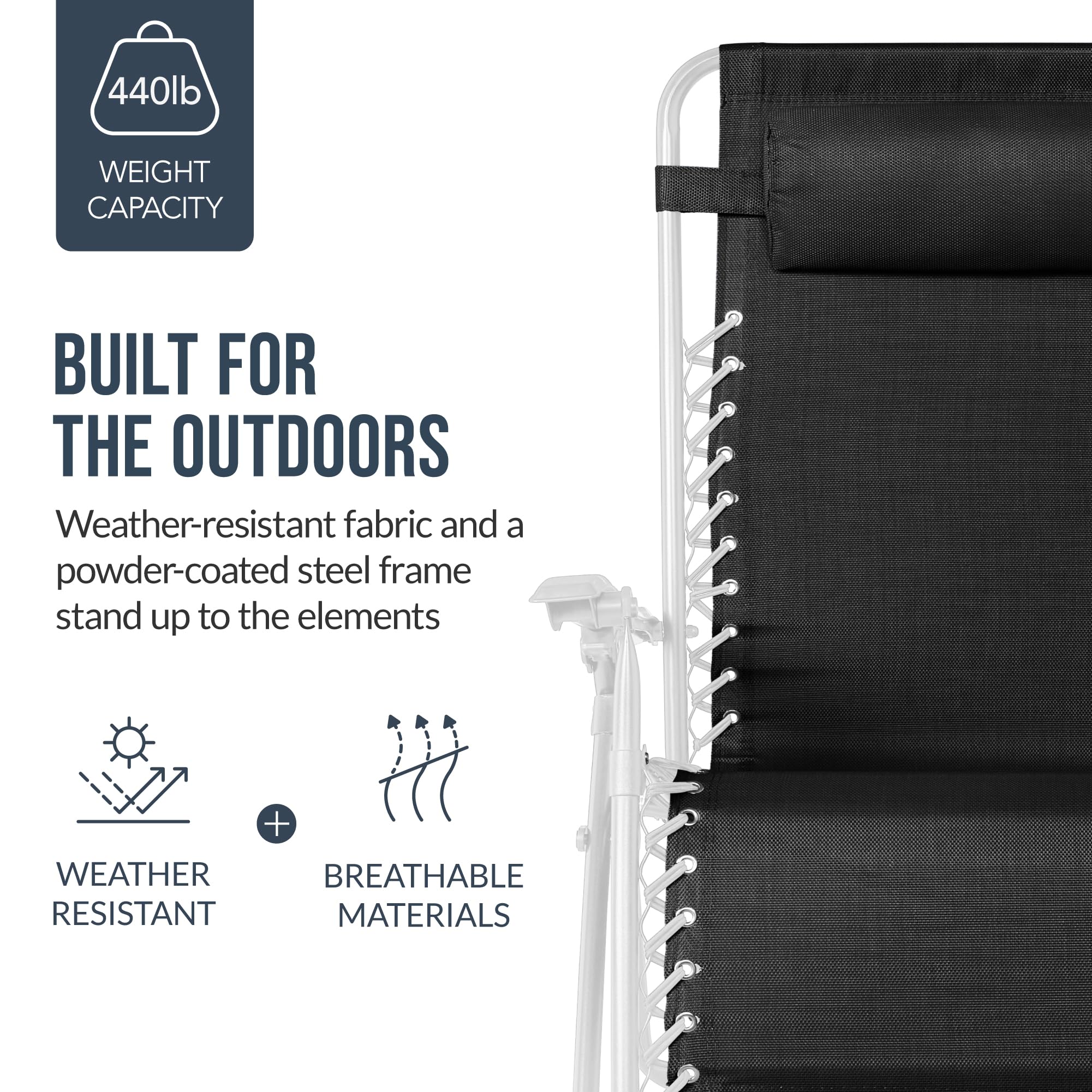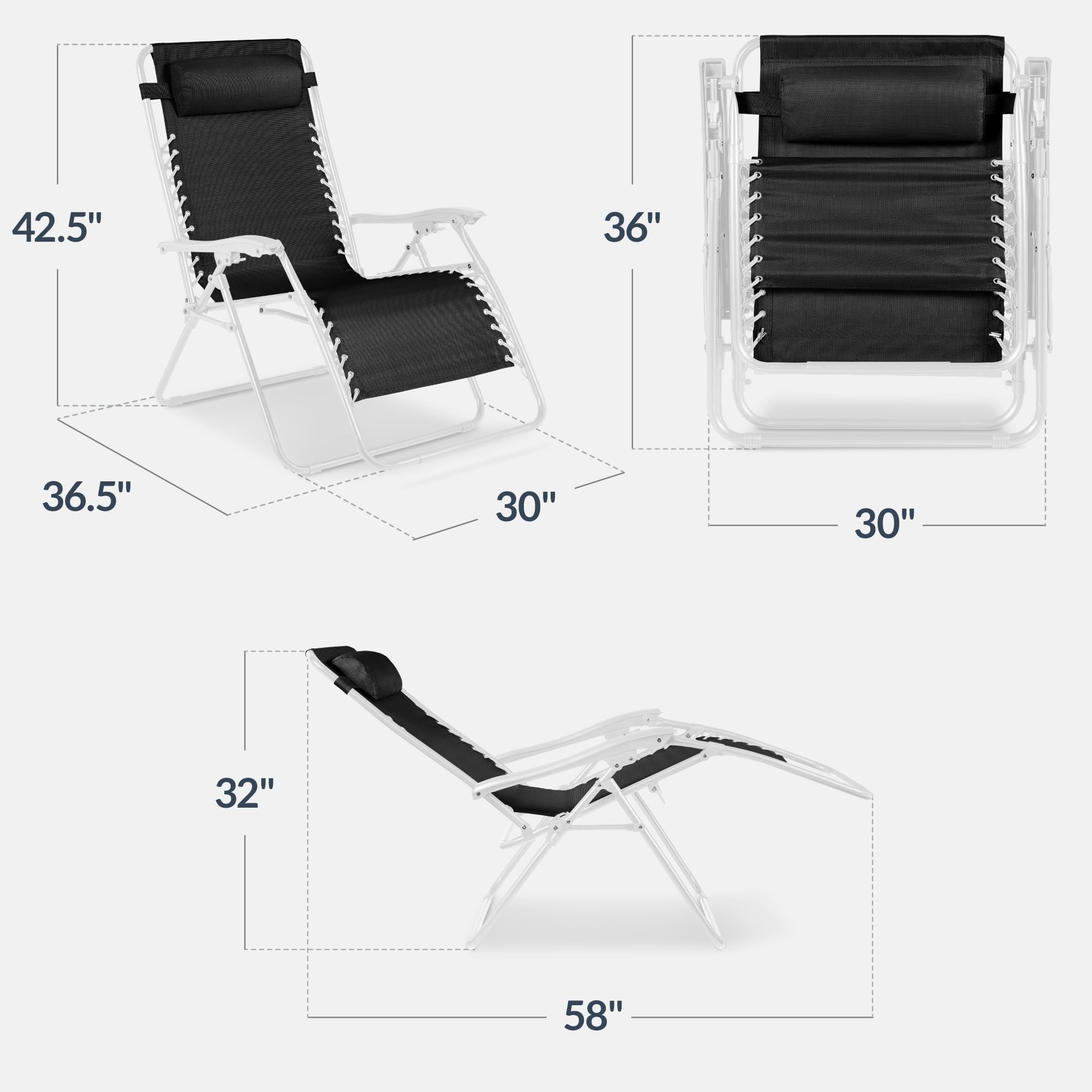 PERFECT FOR PAIRS: Two matching zero-gravity chairs provide comfortable seating for couples, guests, or shared outdoor spaces; OPEN DIMENSIONS: 36.5"-58"(L) x 30"(W) x 32"-42.5"(H); FOLDED DIMENSIONS: 36"(L) x 30"(W) x 4.8"(H); WEIGHT CAPACITY: 440 lbs