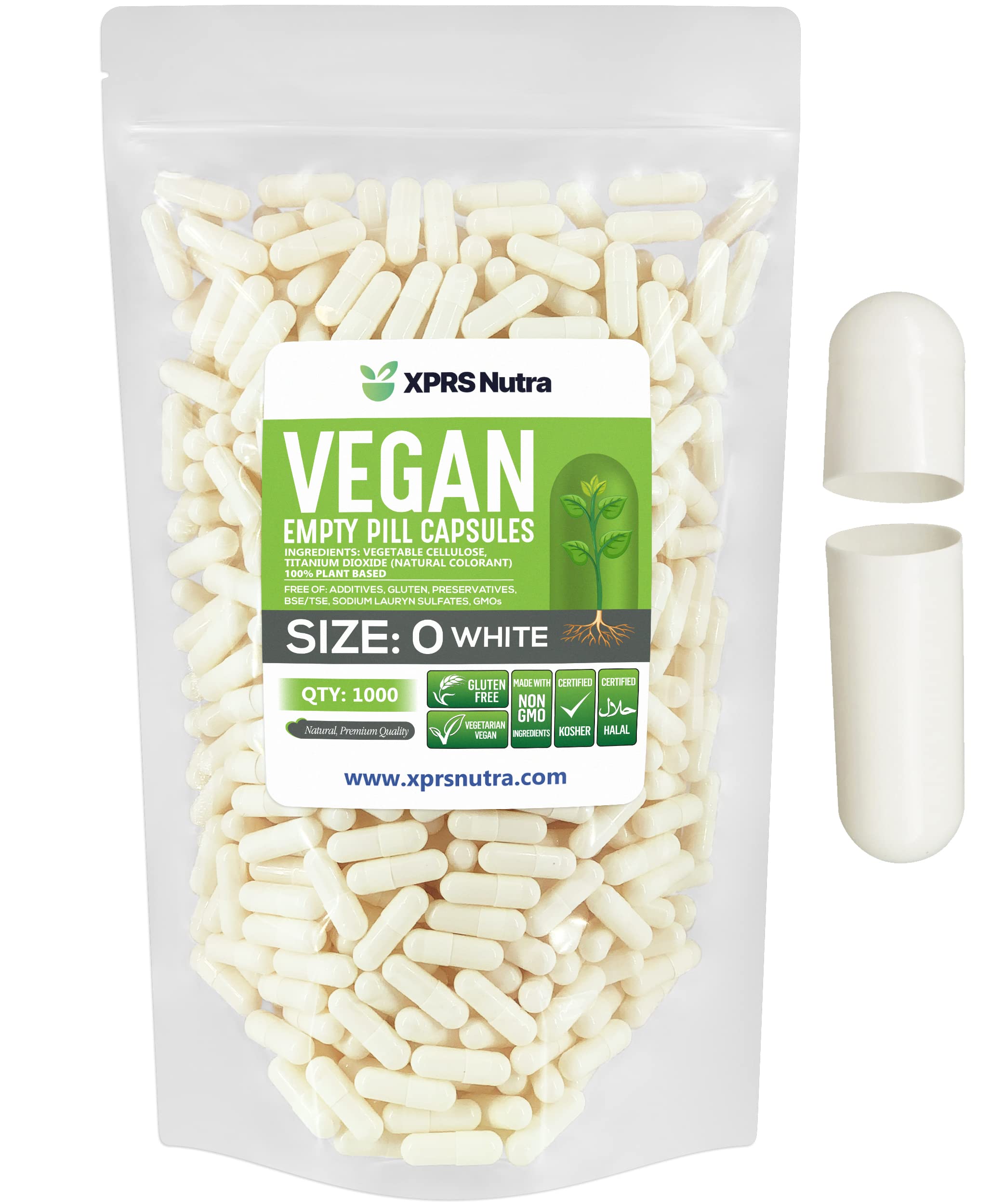 Bulk Options - Choose from convenient 100, 500, 1000, and 5000 count bulk options. At XPRS Nutra, we go the extra mile to help you attain the highest quality pill casing capsules to fill your pre-made supplement, nootropics and fitness vegan gelatin capsules. Our vegi capsules empty 0 are here to help make your life easier.