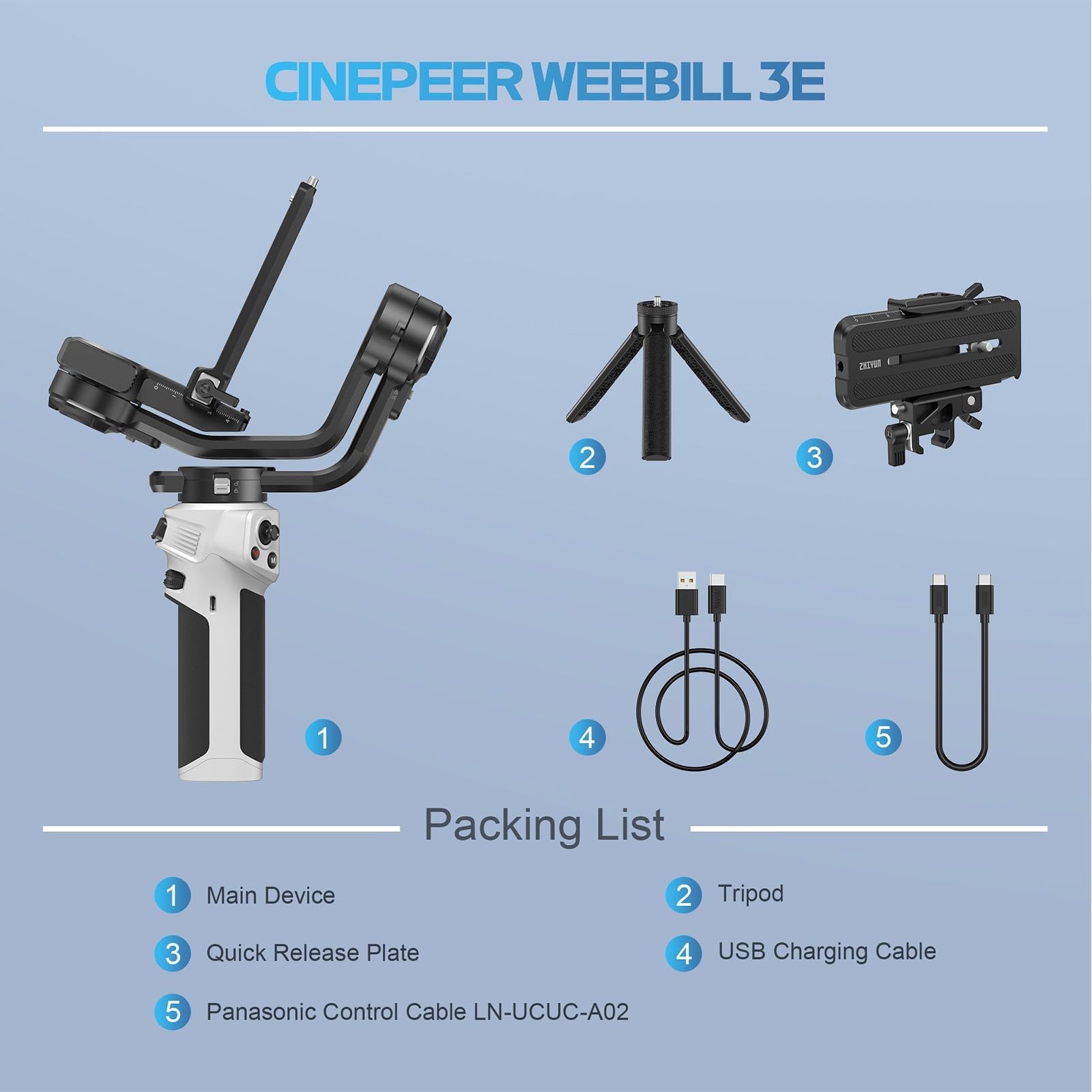 【Small But Strong】ZHIYUN CINEPEER Weebill 3E weighs only 1.05 kg. A4-sized gimbal, Lightweight and portable. It is equipped with a more comfortable handle design that can fully fit the holding posture and reduce fatigue during long-term shooting. 3kg(6.6 lbs)