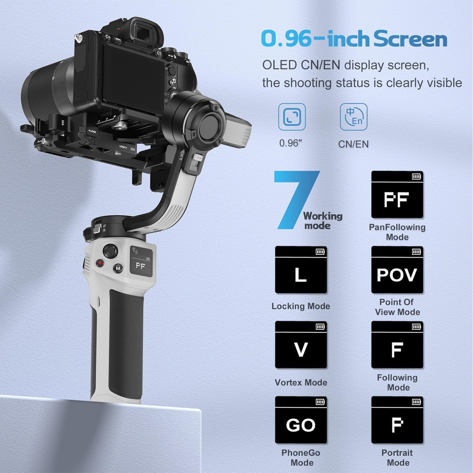 【Native Vertical Shooting】The gimbal stabilizer for camera can be all in one transfered into a quick-mount system of the vertical shooting, which enables efficient and time-saving vertical shooting posture conversion without adding accessories or disassembling gimbal parts.