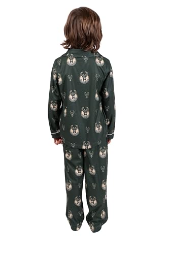 STYLISH DESIGN: This set includes a button-up shirt, elastic waistband bottoms, and an all-over print of your favorite NBA team's primary and secondary logos.