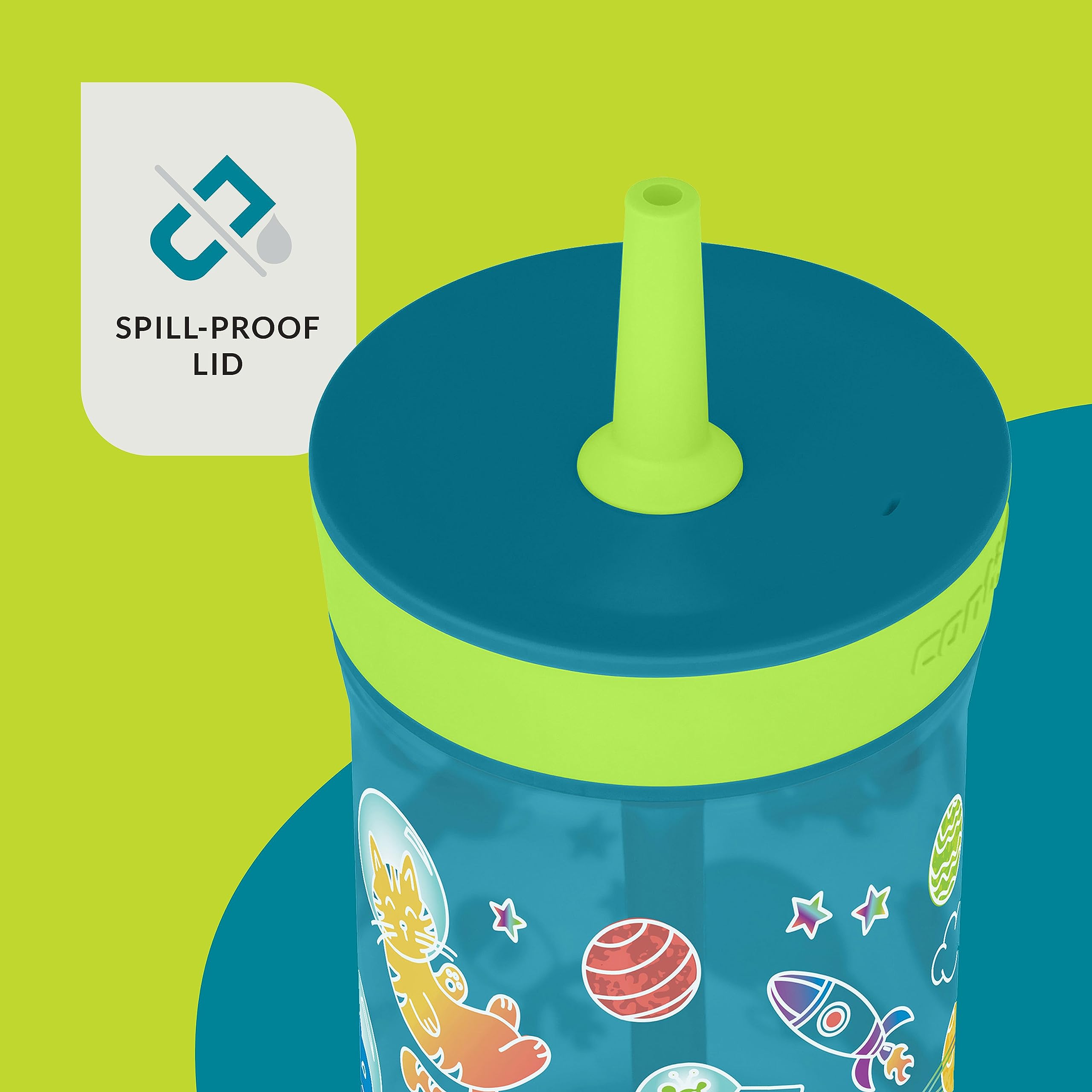 SPILL-PROOF STRAW LID β Unique valve opens only when your child sips and closes automatically between drinks to reduce spills, drips and messes.