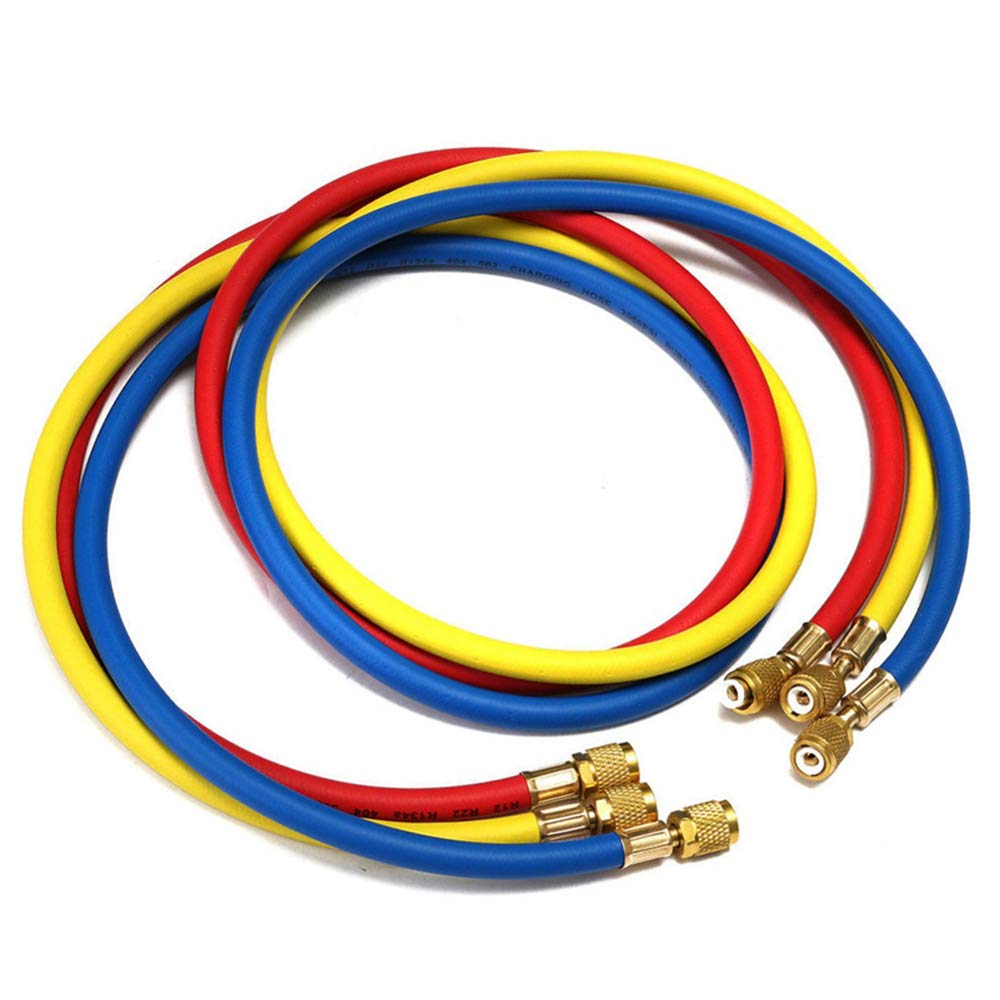 60 inch long,1/4 inch yellow,blue,and red hoses feature a 800 PSI working pressure and 4000 PSI burst pressure - ideal for standard refrigerants.