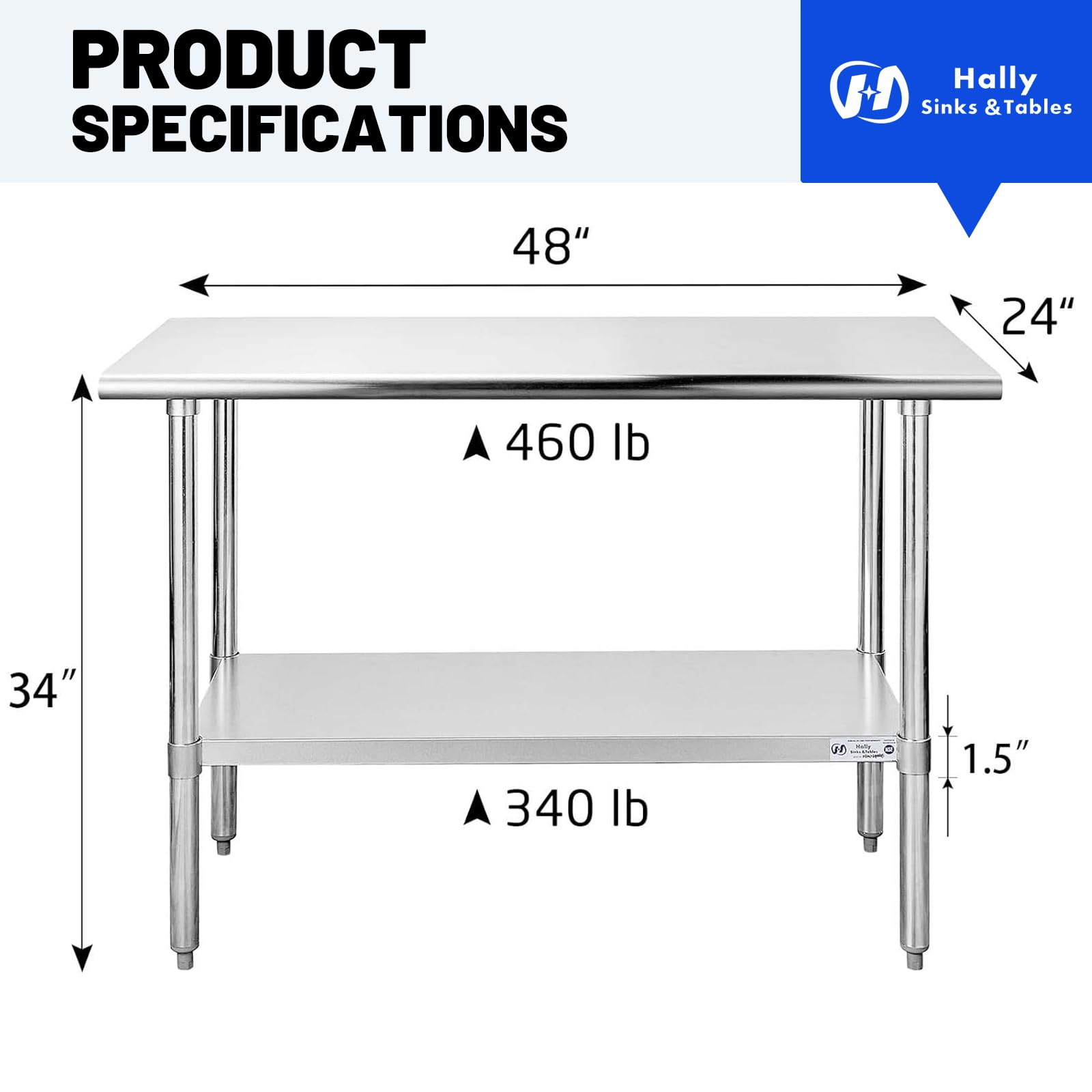 Large & Practical Storage**2 layers: 460 lb. top shelf weight capacity; 340 lb. undershelf weight capacity, dimension 24 x 48 inches, offer you enough storage room for microwave oven, kitchen utensils or any other tools