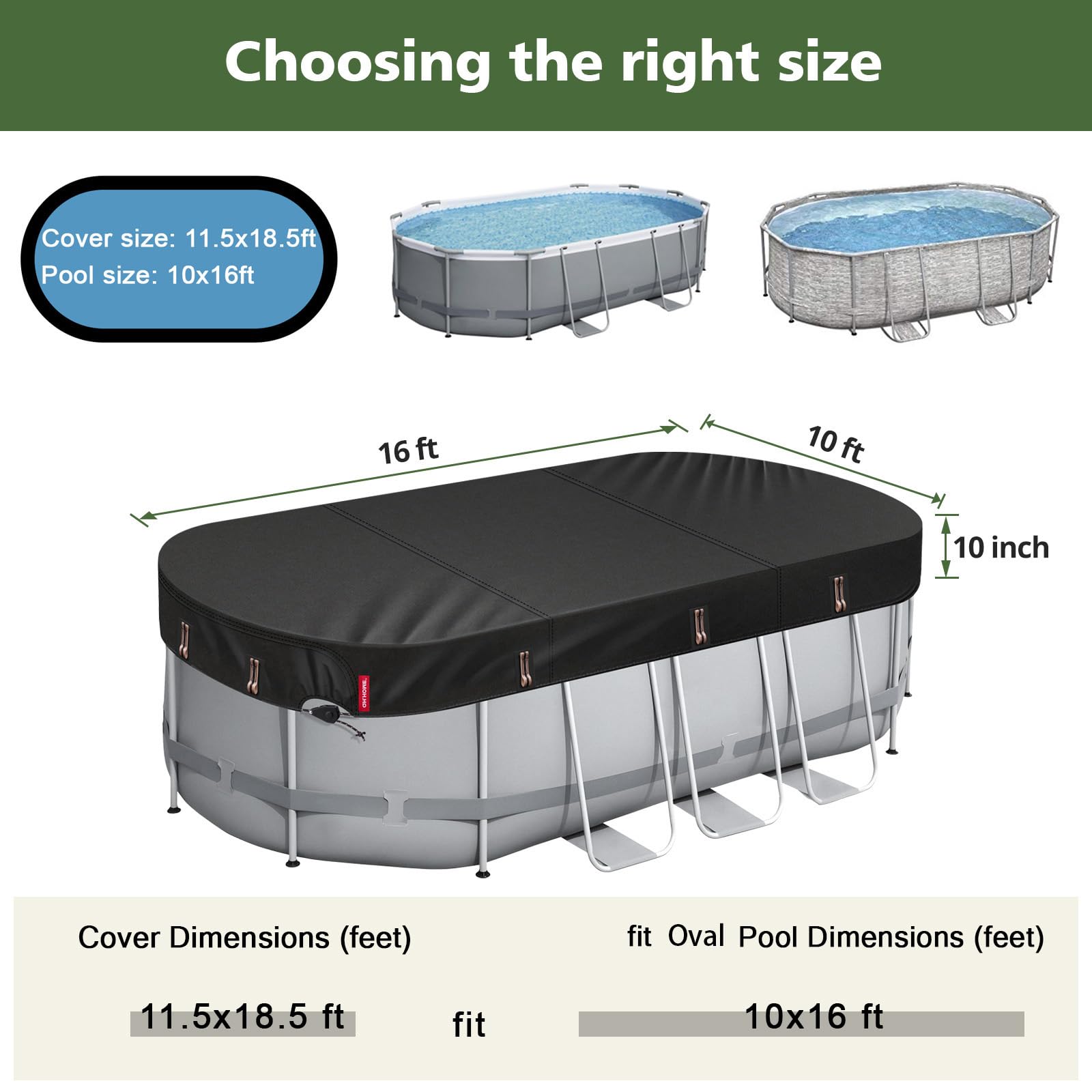 【2025 Upgraded Windproof Design】 Our oval pool cover has two patented tightening ratchets inside to help users quickly install and remove, with the pool cover edge load-bearing hanging rings (can hang sandbags/heavy objects), you can tie it directly to the frame or hang heavy objects at the edge of the pool, so that the cover is always in a stable condition, no need to worry about the windy weather!