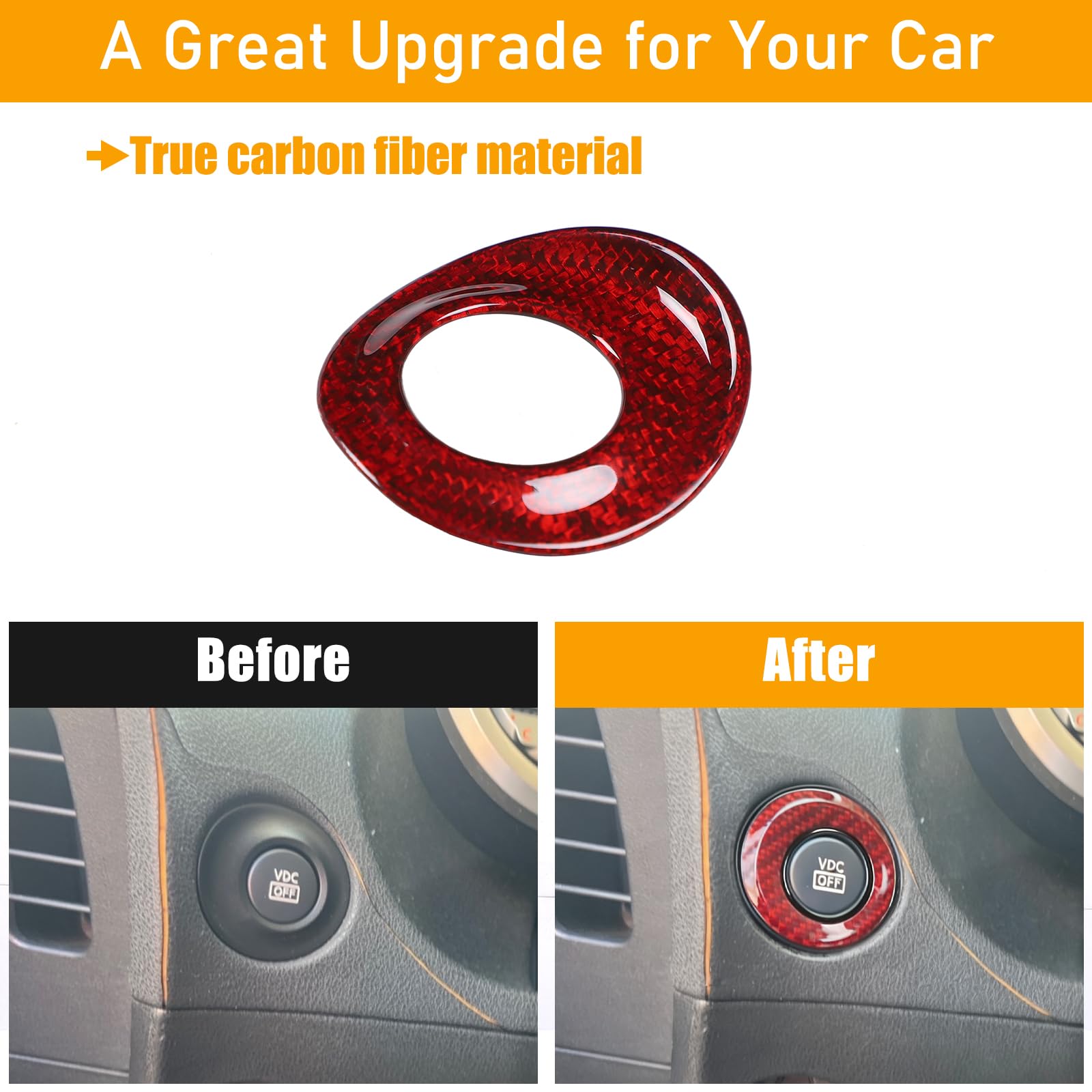 【High-Quality Material】:Crafted from high-quality genuine carbon fiber material, it offers exceptional durability and resistance to wear. Installation preserves the original vehicle appearance without causing scratches. It perfectly covers the factory ESP button frame, with a surface resistant to dents from impacts, ensuring full aesthetic integrity