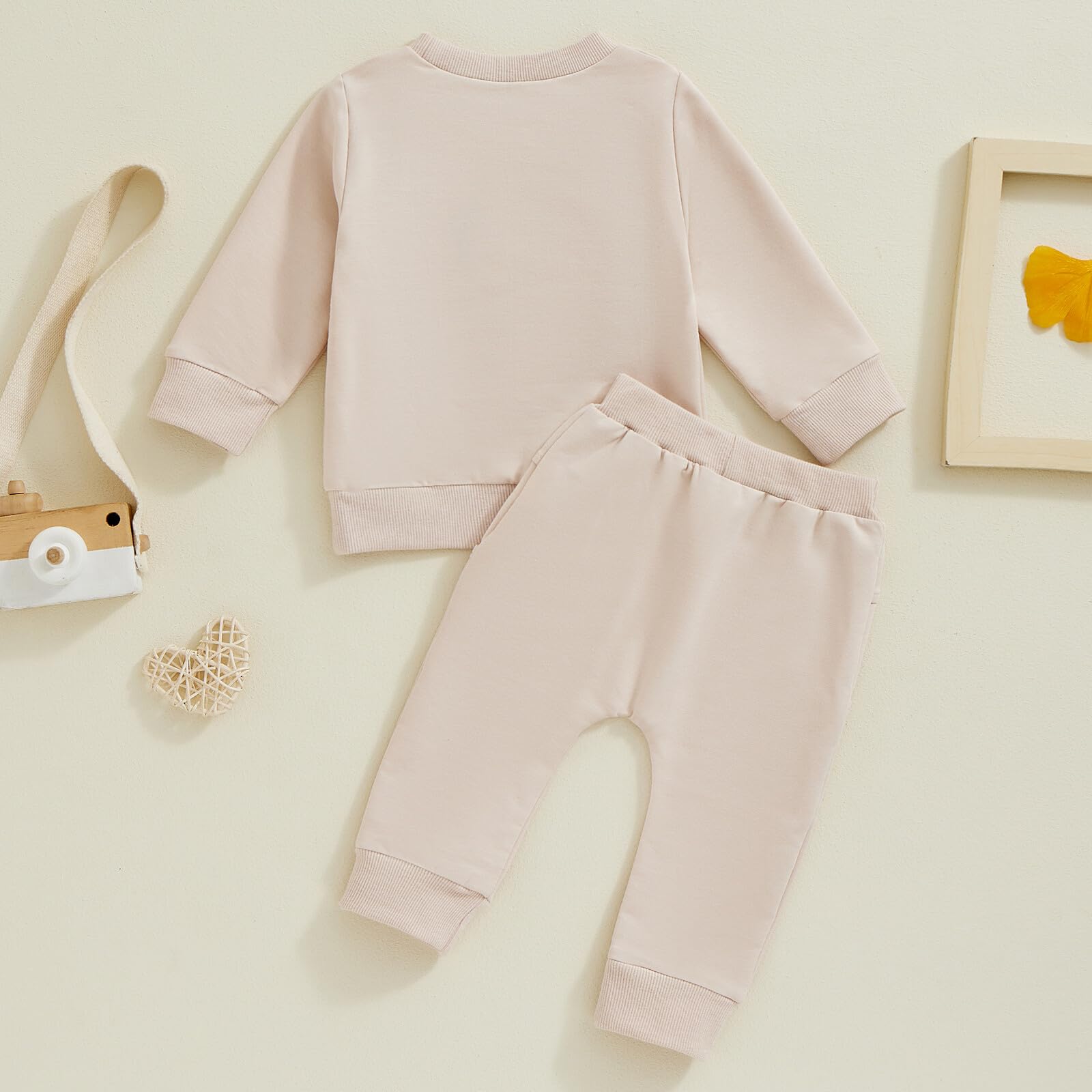 Design: Baby girl fall clothes, baby girl winter clothes ,''mama's bestie'' 'autie's bestie' 'mama's girl' 'daddy's girl' 'LOVE' 'daddy's mini' letter embroidered crewneck sweatshirt, baby jumpers, matching with long pants with pockets, toddler girl joggers set, which makes your little litlle looks cute and lively