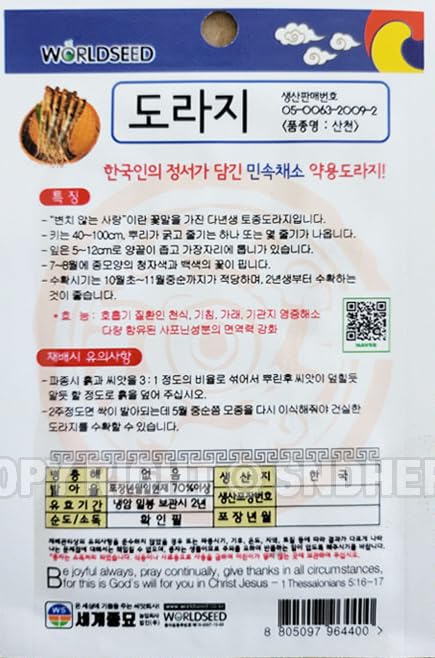 Balloon Flower Root Seeds Korean, 1 Pack, 4 Grams (도라지). Imported from Korea. Product from WorldSeed.
