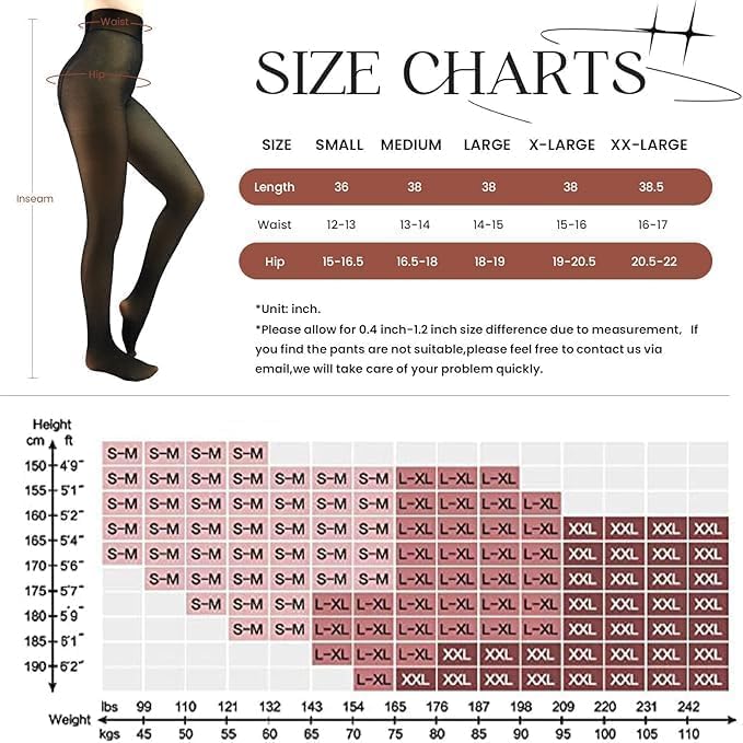 【Slims And Shapes Your Body】:Warm fleece pantyhose comfortable and flexible high waist design flattens your tummy for a trim look and holds your tights in place.Pantyhose leggings enough stretch hugs your legs without the appearance bunching or sagging.