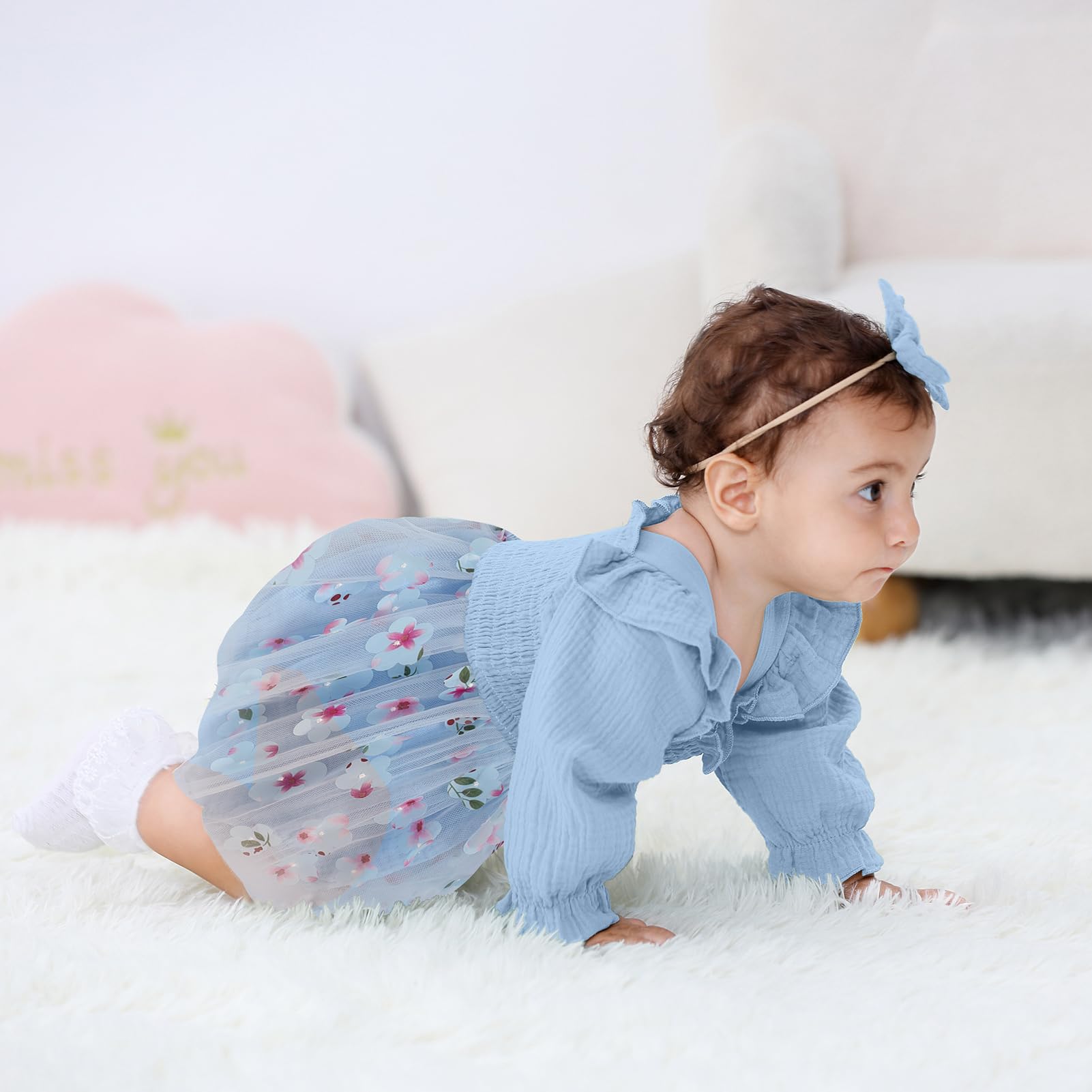 Material: Baby girls birthday romper made of Cotton+tulle fabric, super soft and breathable, comfortable absorbent to wear, friendly to baby's skin, cares for newborns too.