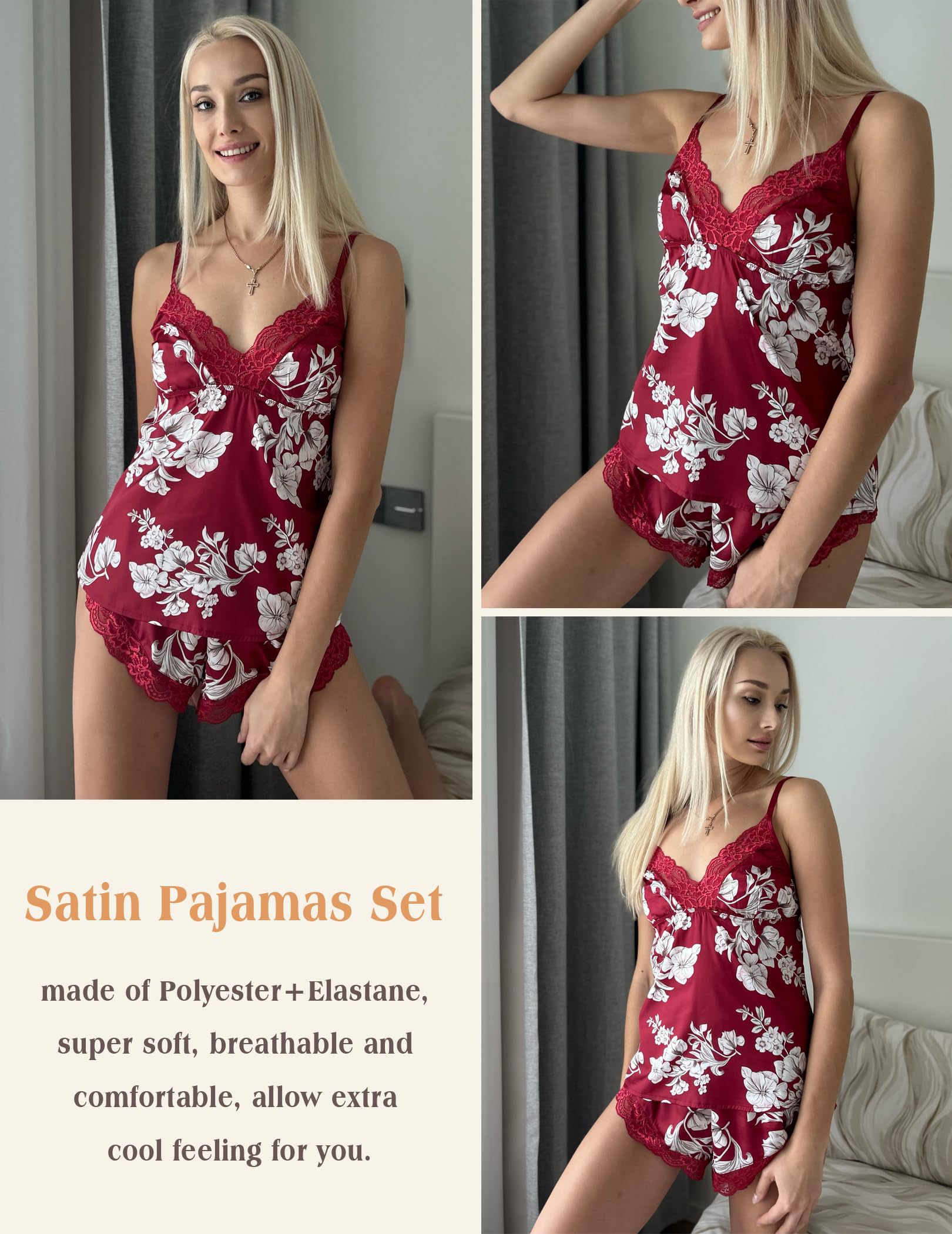 ❤️Material: Women pajamas set is made of Polyester+Elastane, super soft, breathable and comfortable, allow extra cool feeling for you.