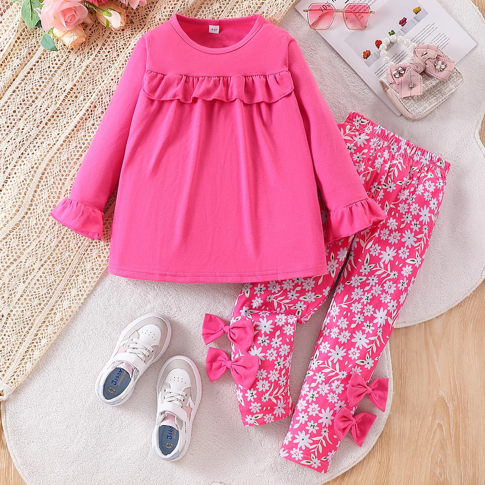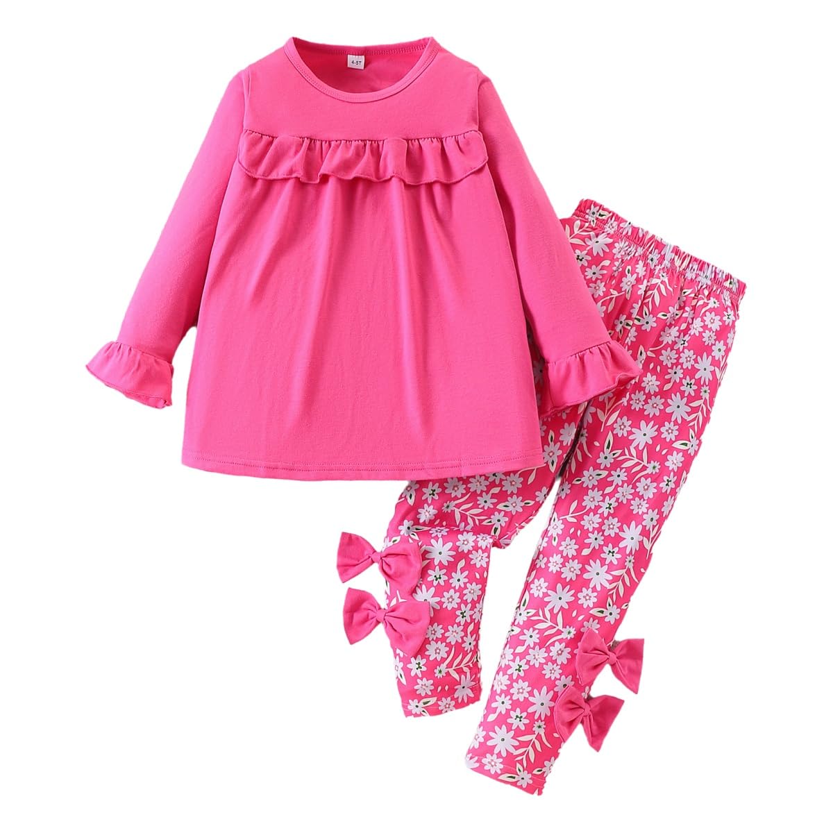 Description Toddler Girl Clothes Ruffle Sleeve High Low Top Floral Allover Pant 2PC Kid Girls Fall Winter Outfit Set
