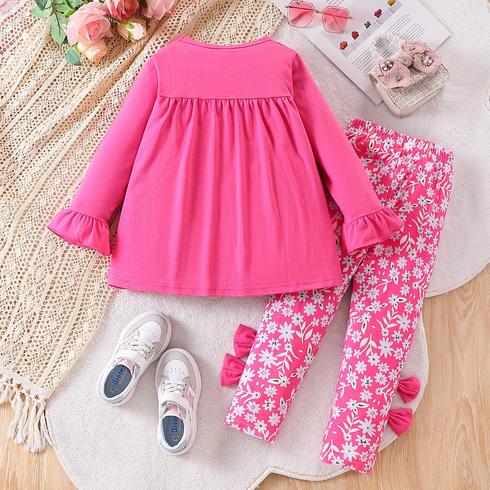 CUTE GIRLS CLOTHING: Floral pants with sweet design,Round neckline and short sleeves,Sweet style floral print girl clothing set, Cute Girls Autumn & Winter Two Piece Set.